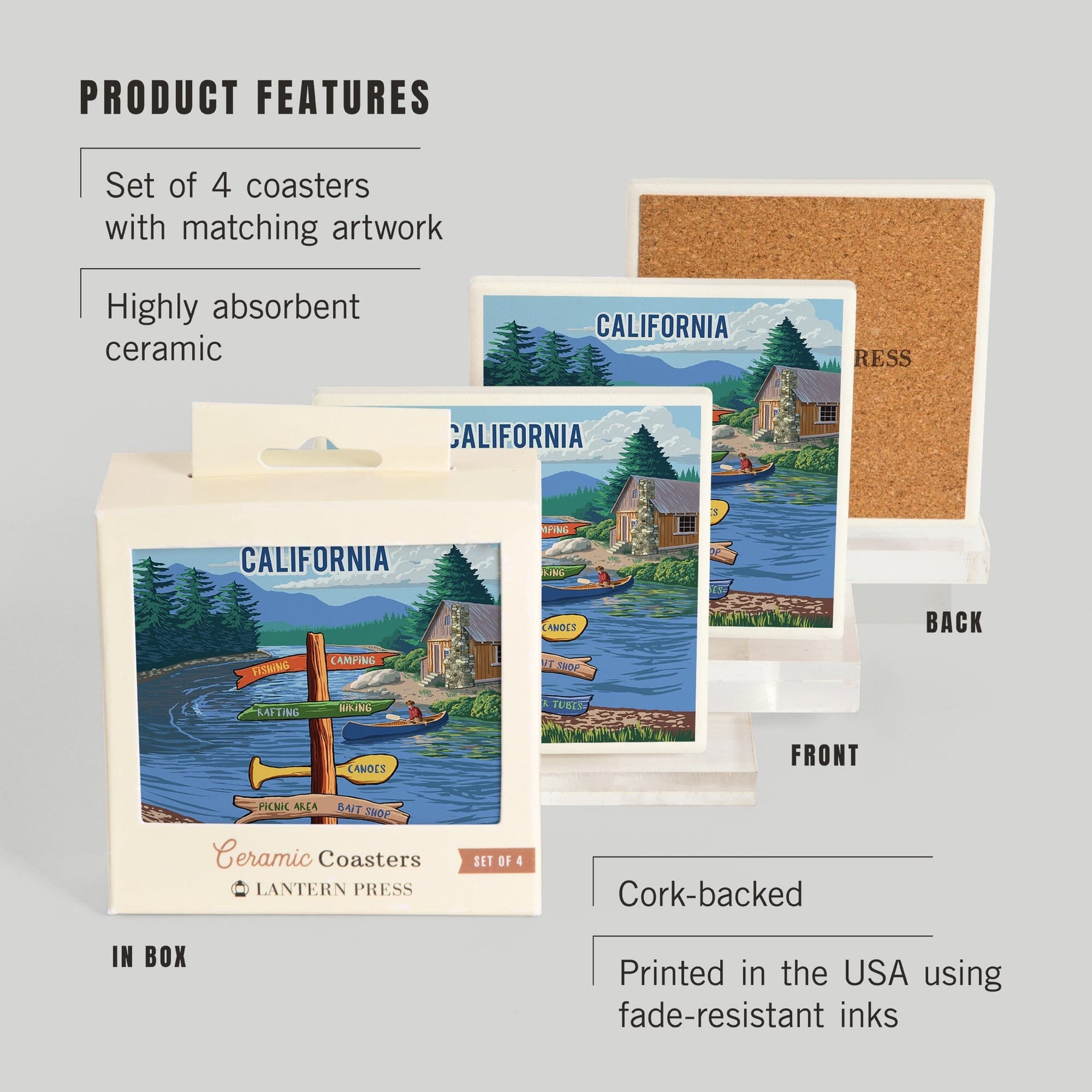 California, Signpost, River, Coasters Coasters Lantern Press