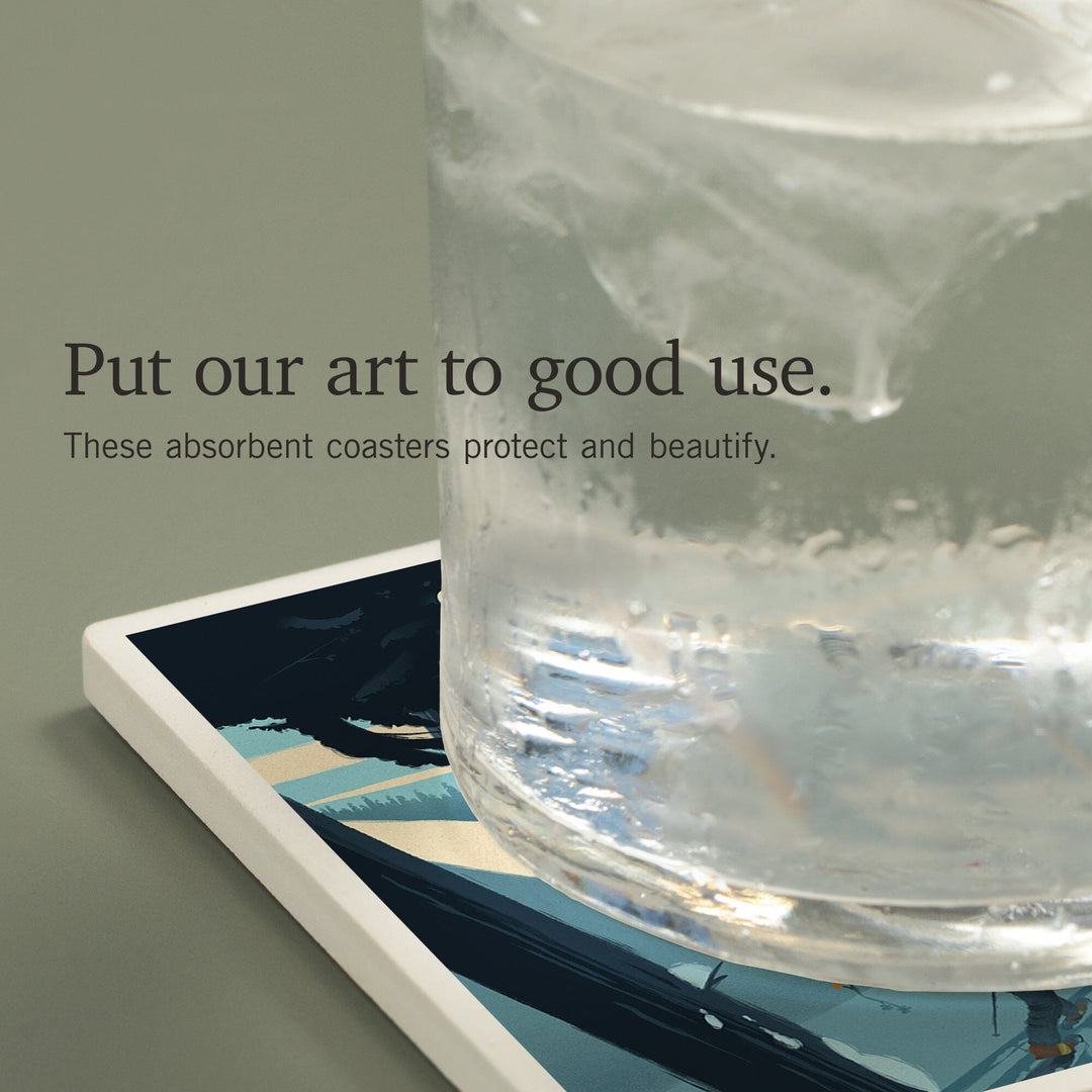 Seattle Skyline, Bigfoot, WPA Style, Coasters