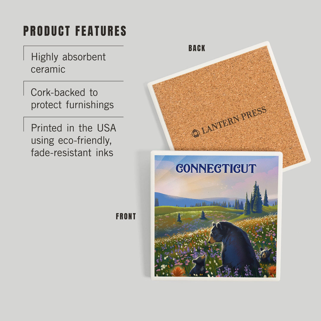 Connecticut, Lithograph, Bear Family in Field, Coasters Coasters Lantern Press
