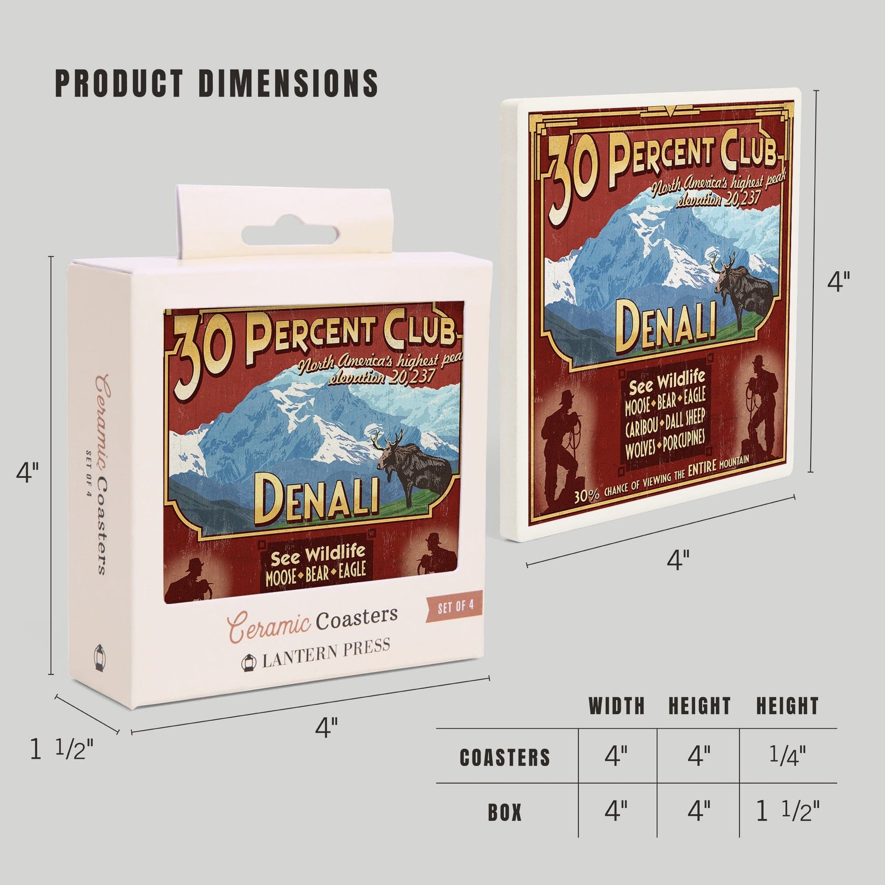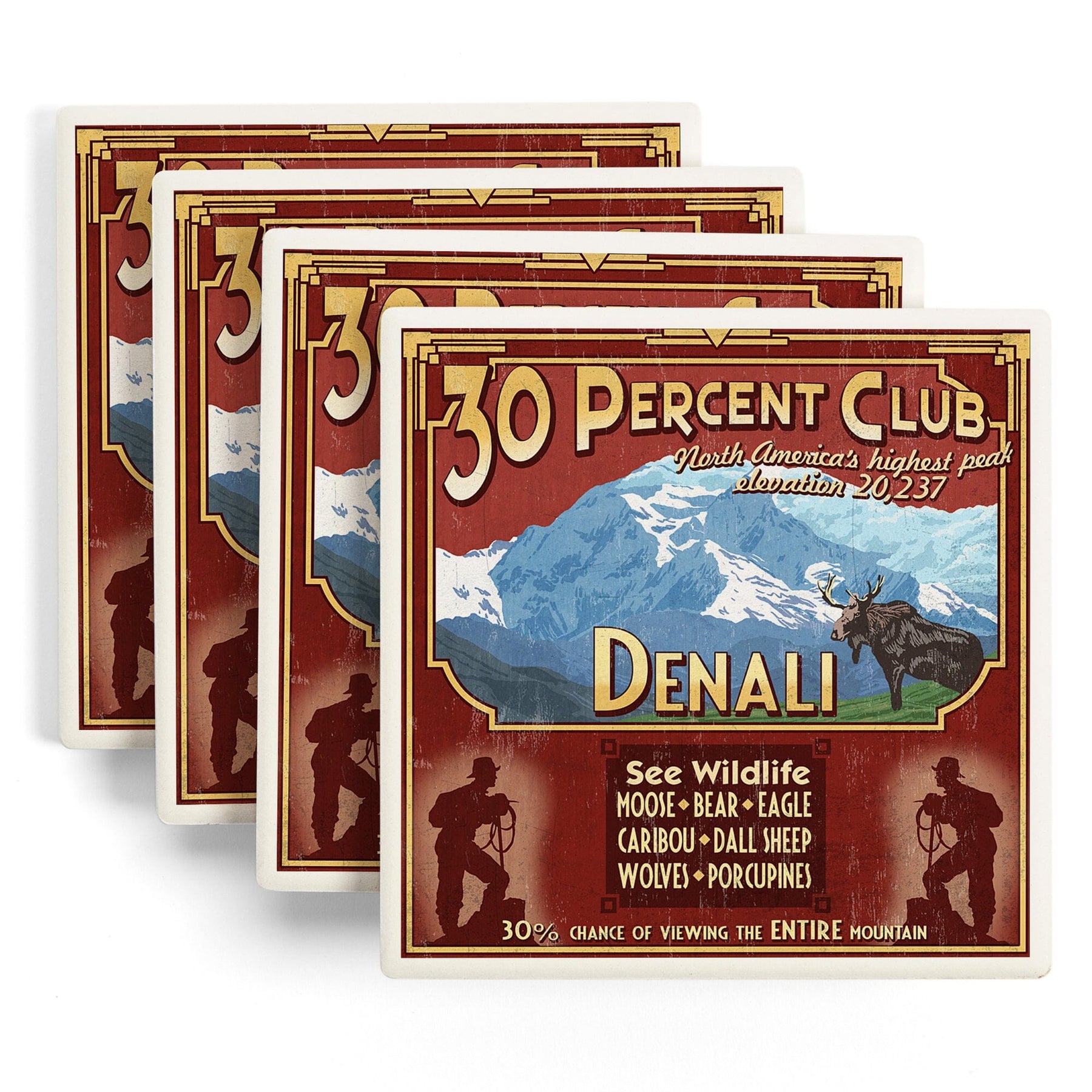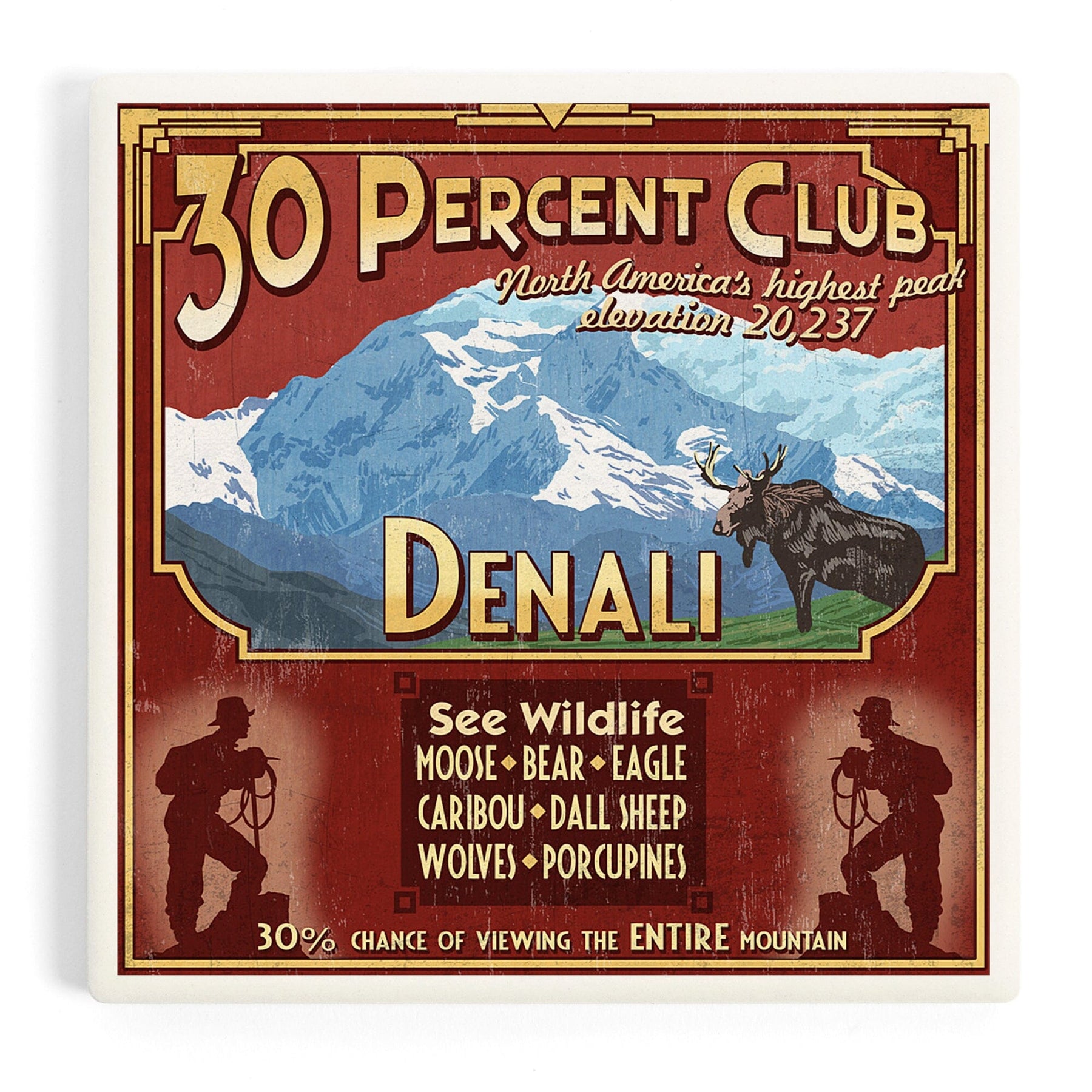 Denali National Park, Alaska, 30% Club Vintage Sign, Coasters Coasters Lantern Press