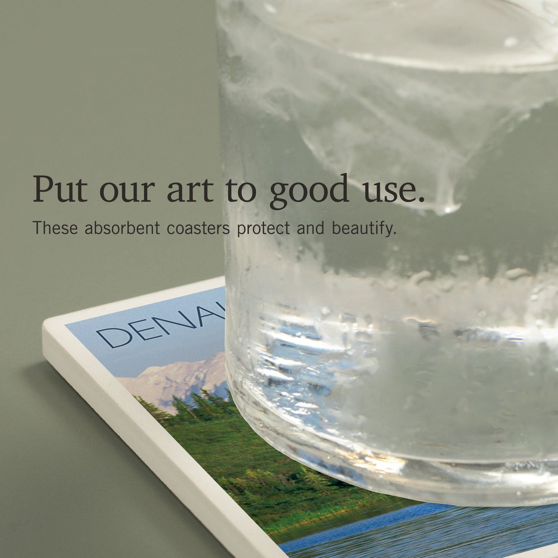 Denali National Park, Alaska, Moose and Water, Coasters Coasters Lantern Press