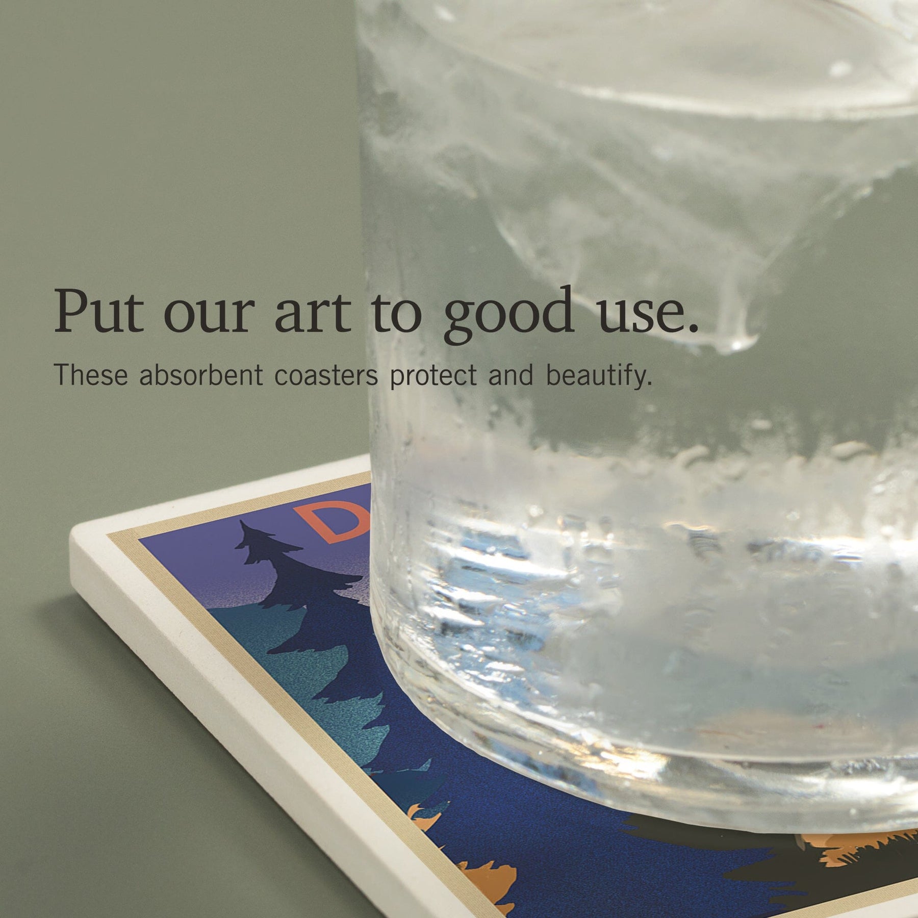 Denali National Park, Alaska, Mountain Scene, Lithograph, Coasters Coasters Lantern Press