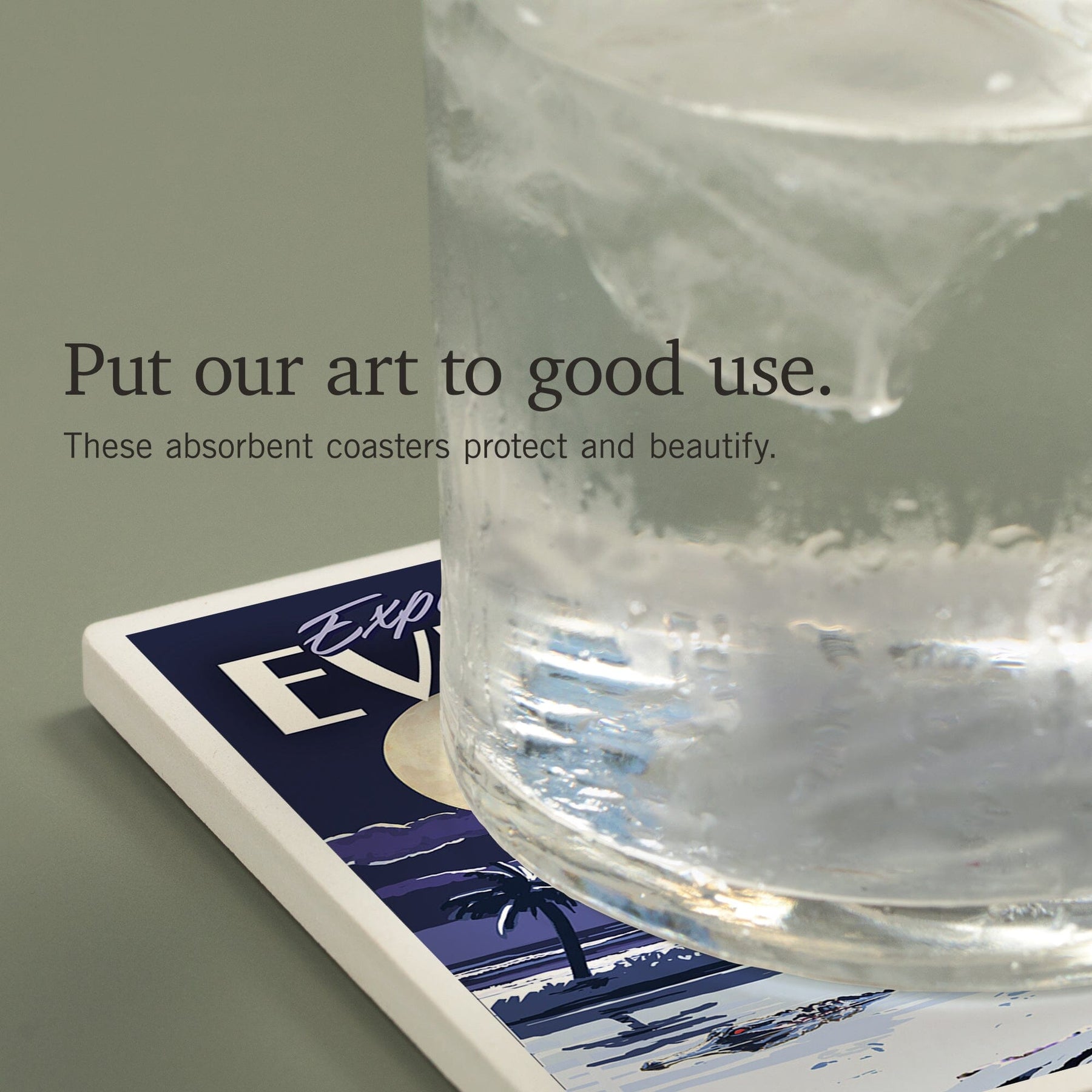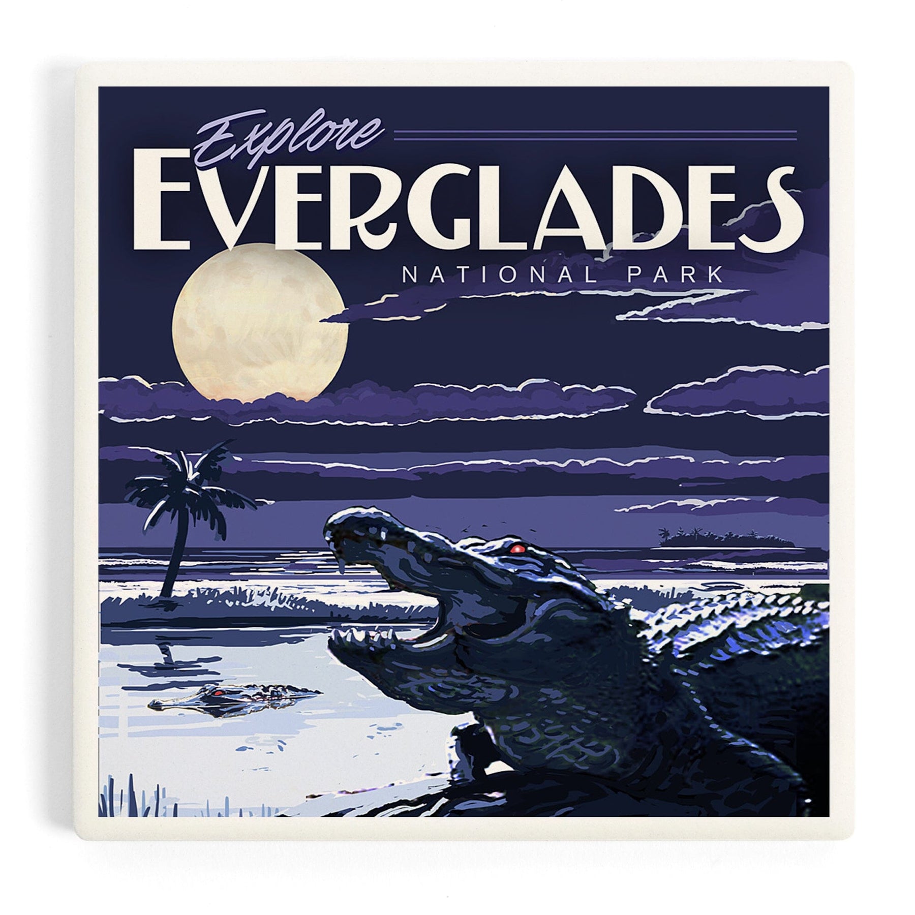 Everglades National Park, Night Alligator, Painterly Series, Coasters Coasters Lantern Press