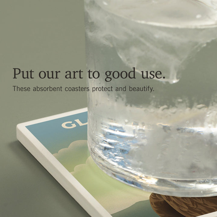 Glacier Park, Montana, Lithograph Wildlife Series, Bald Eagle, Coasters