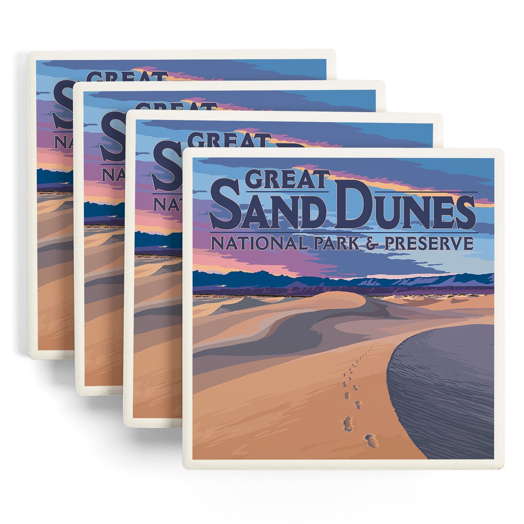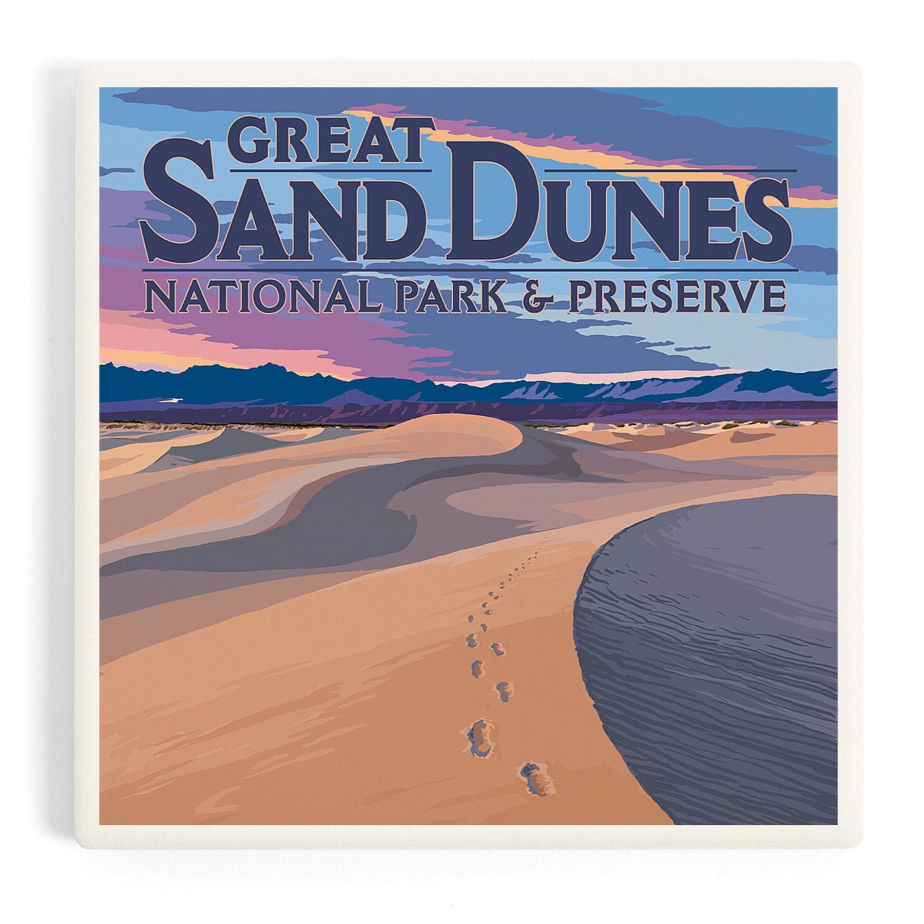 Great Sand Dunes National Park and Preserve, Colorado, Dunes and Footprints, Coasters Coasters Lantern Press