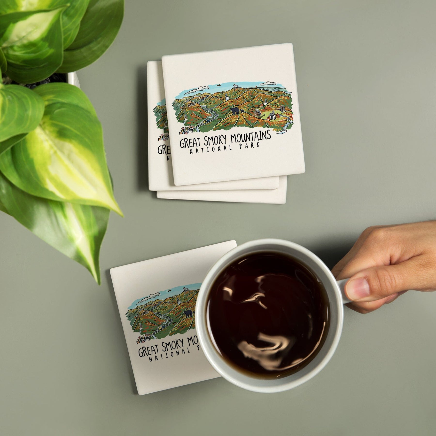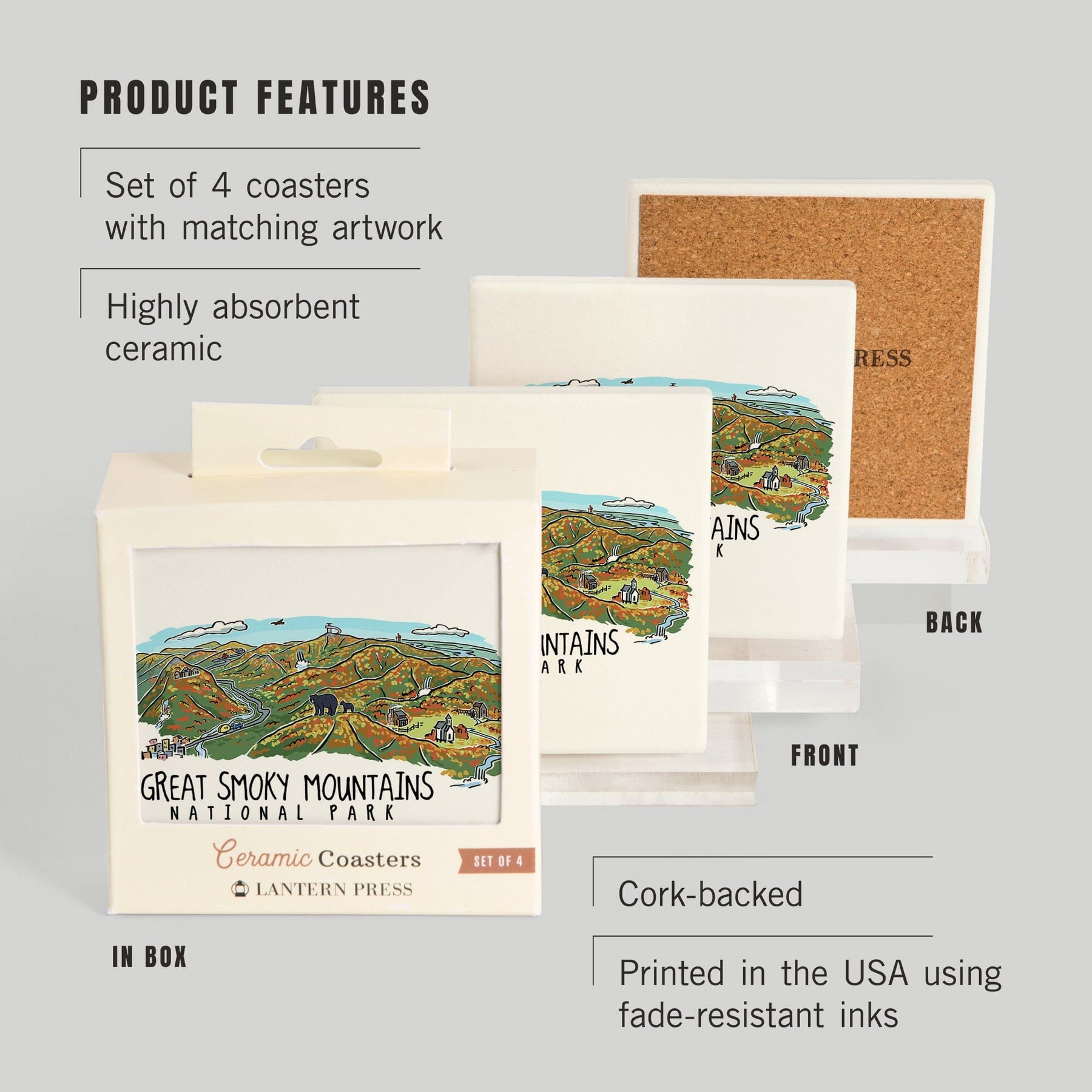 Great Smoky Mountains National Park, Tennessee, Line Drawing, Fall Version Press, Coasters Coasters Lantern Press