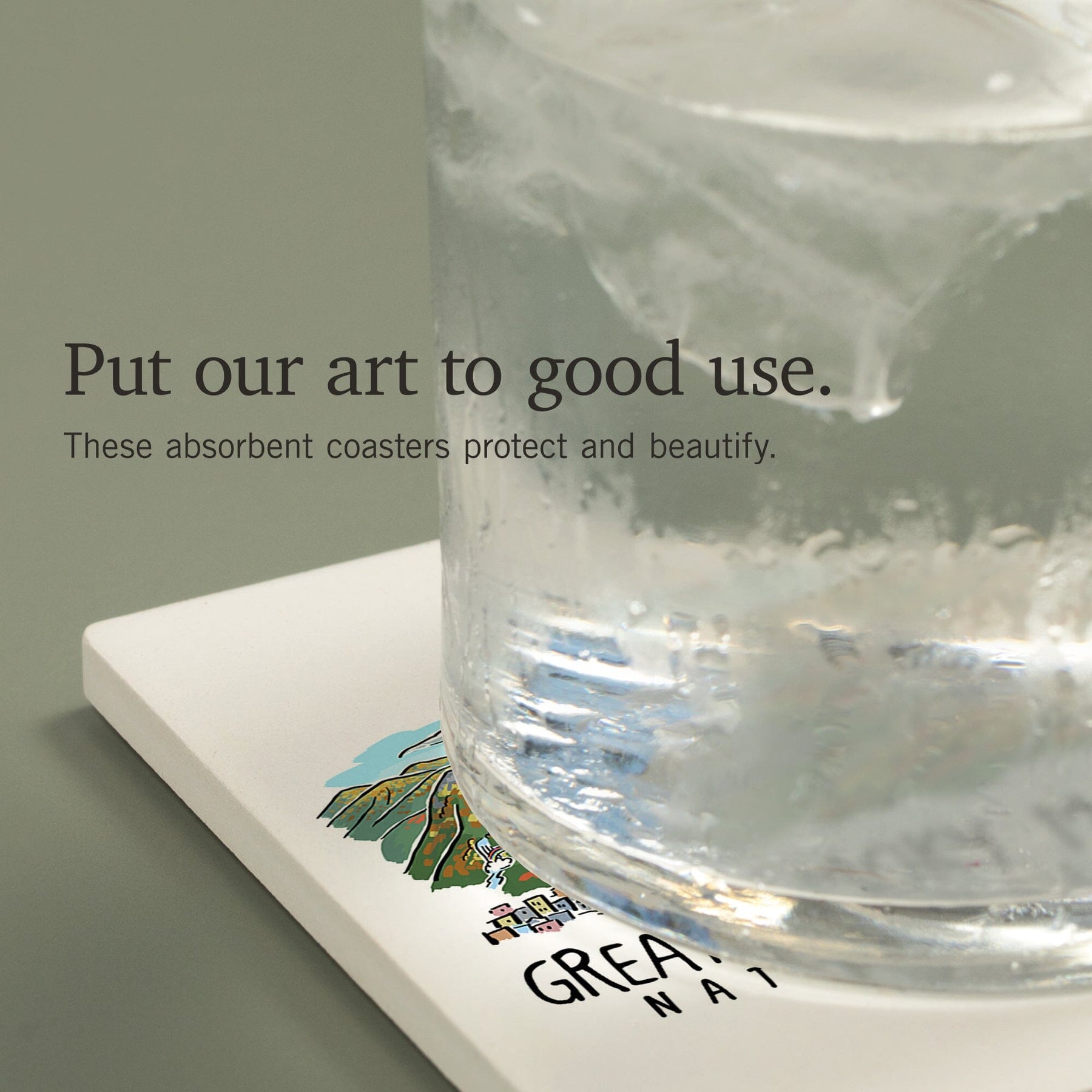 Great Smoky Mountains National Park, Tennessee, Line Drawing, Fall Version Press, Coasters