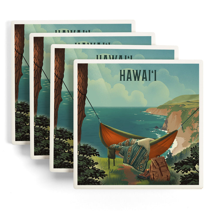 Hawai‘i, Today's Office, Coastal Series, Hammock on Beach, Coasters Coasters Lantern Press