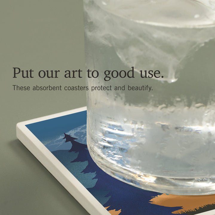 Seattle Skyline, Bigfoot, WPA Style, Coasters