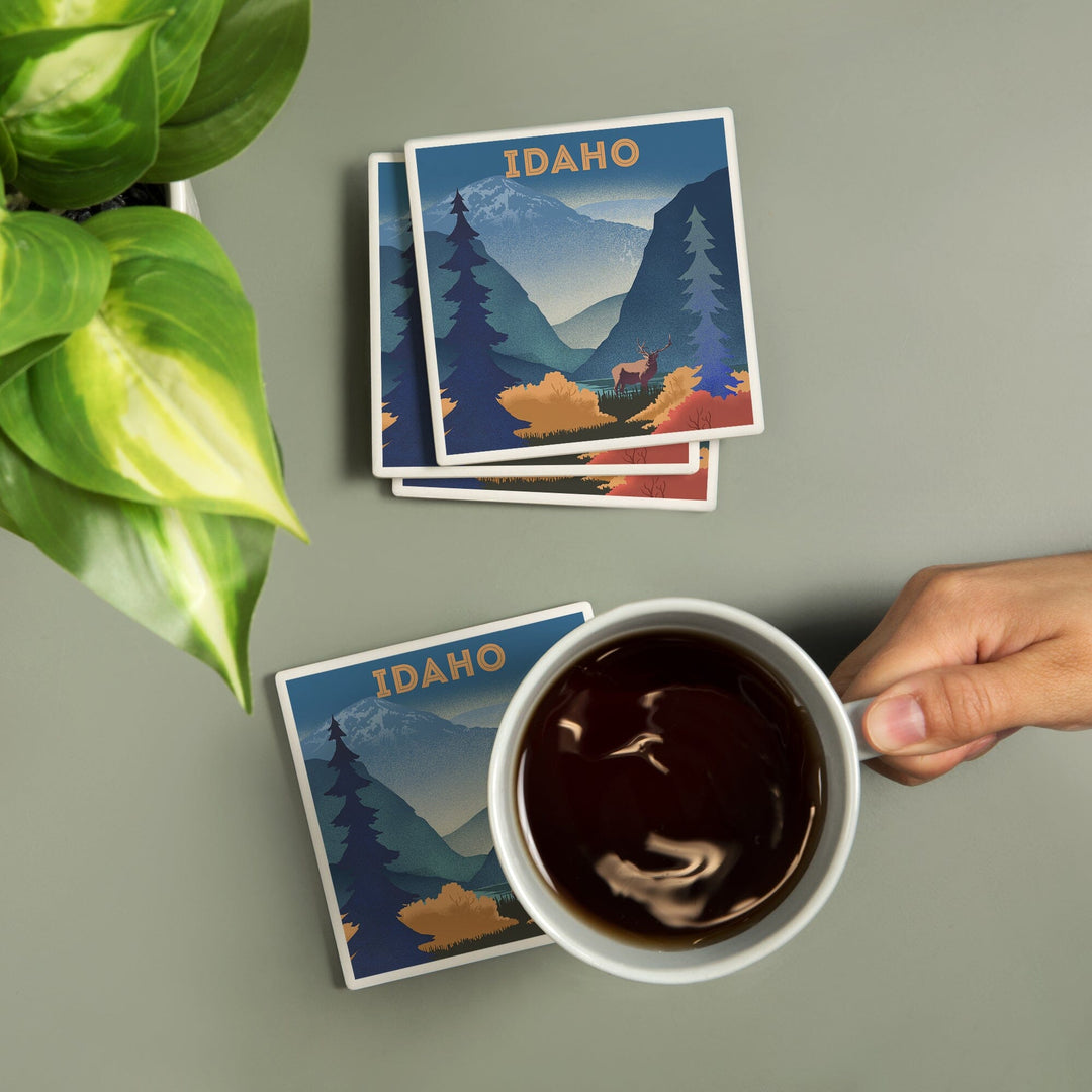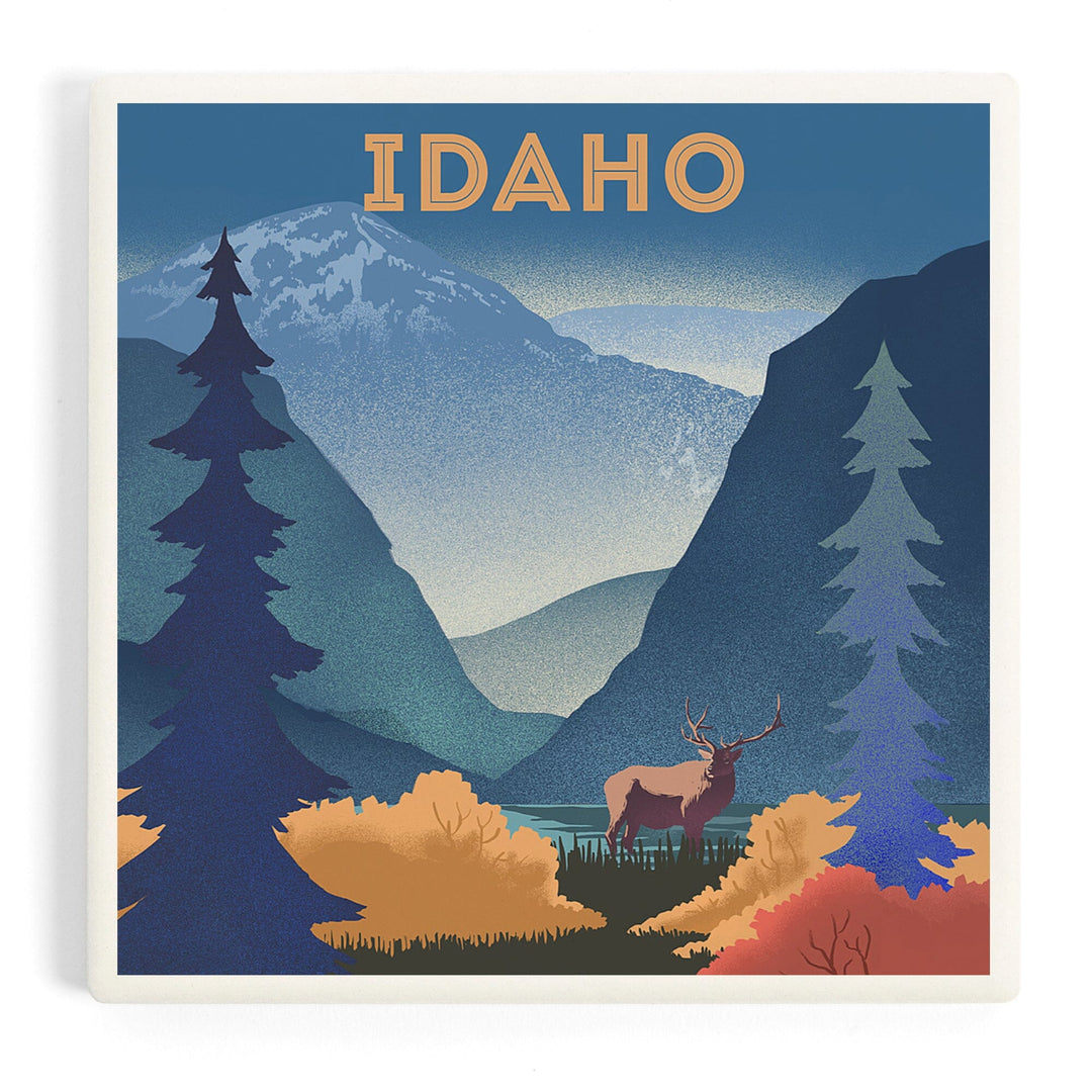 Idaho, Lithograph, Elk and Mountains Scene, Coasters Coasters Lantern Press