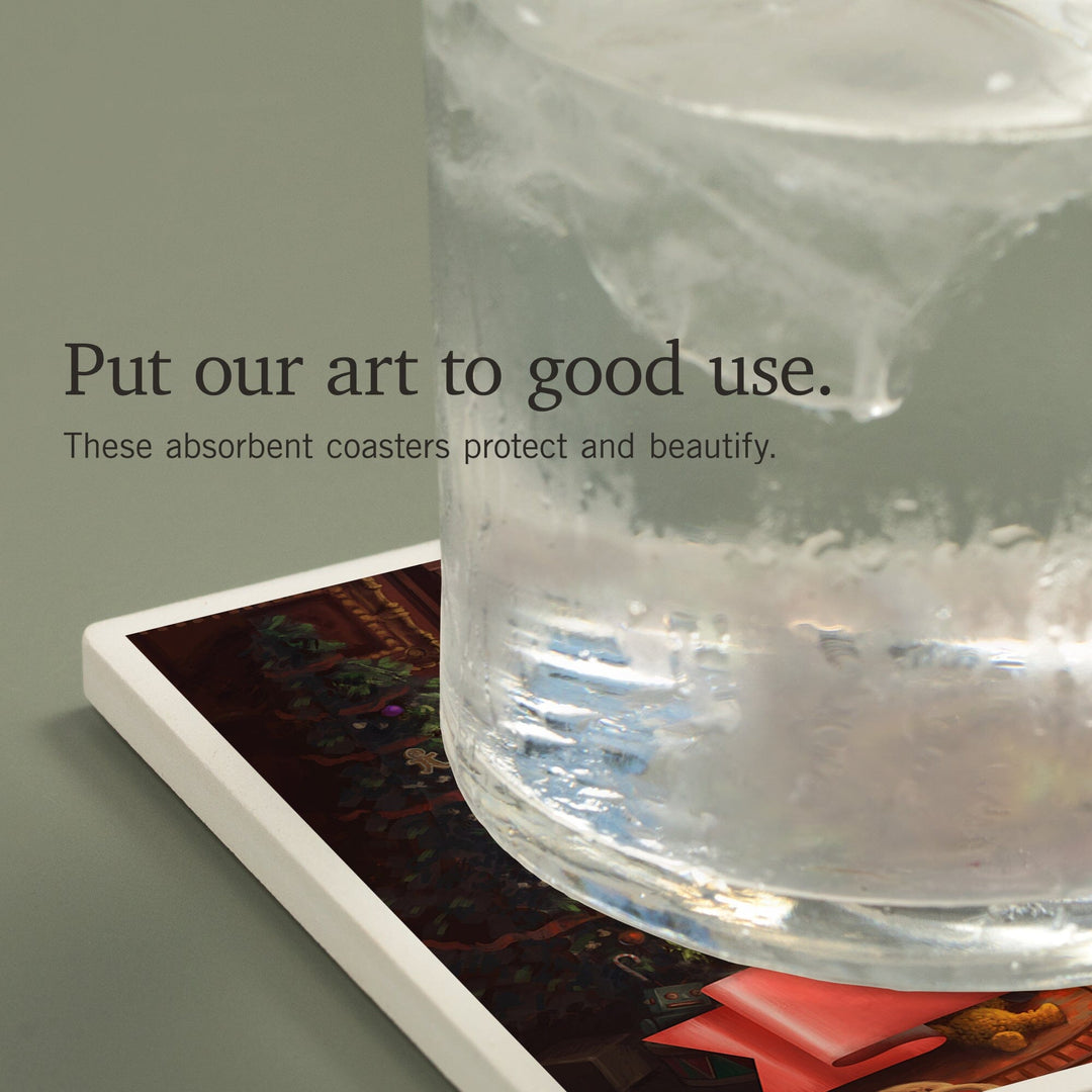 Iowa, Christmas Morning, Coasters Coasters Lantern Press