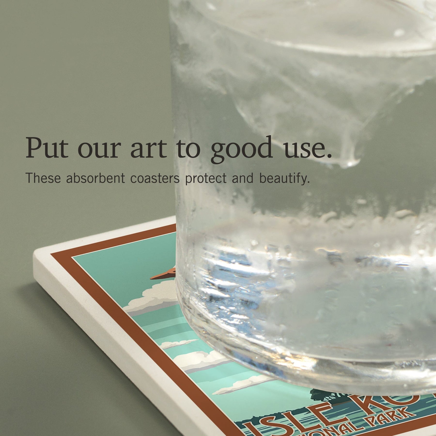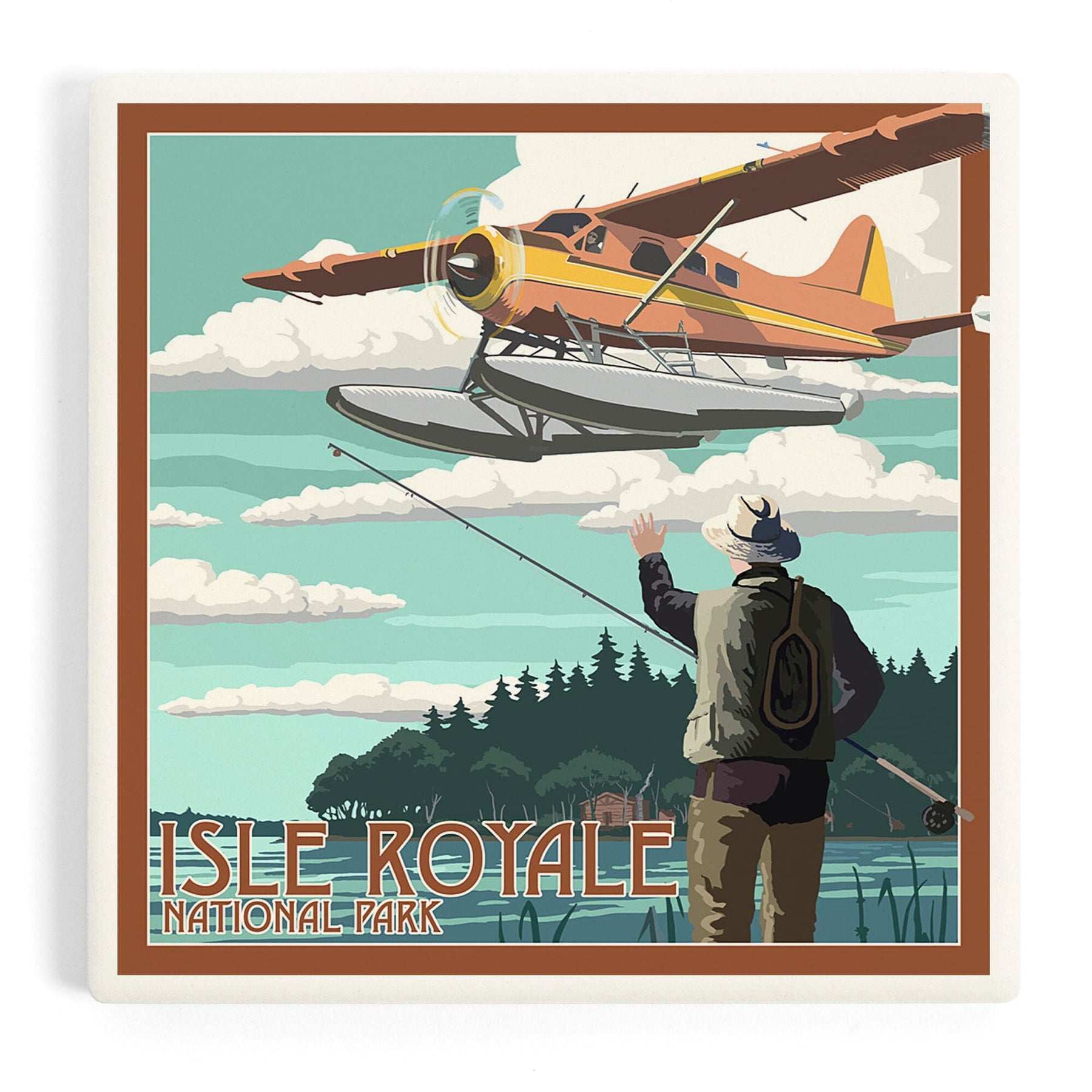 Isle Royale National Park, Michigan, Float Plane and Fisherman, Coasters Coasters Lantern Press