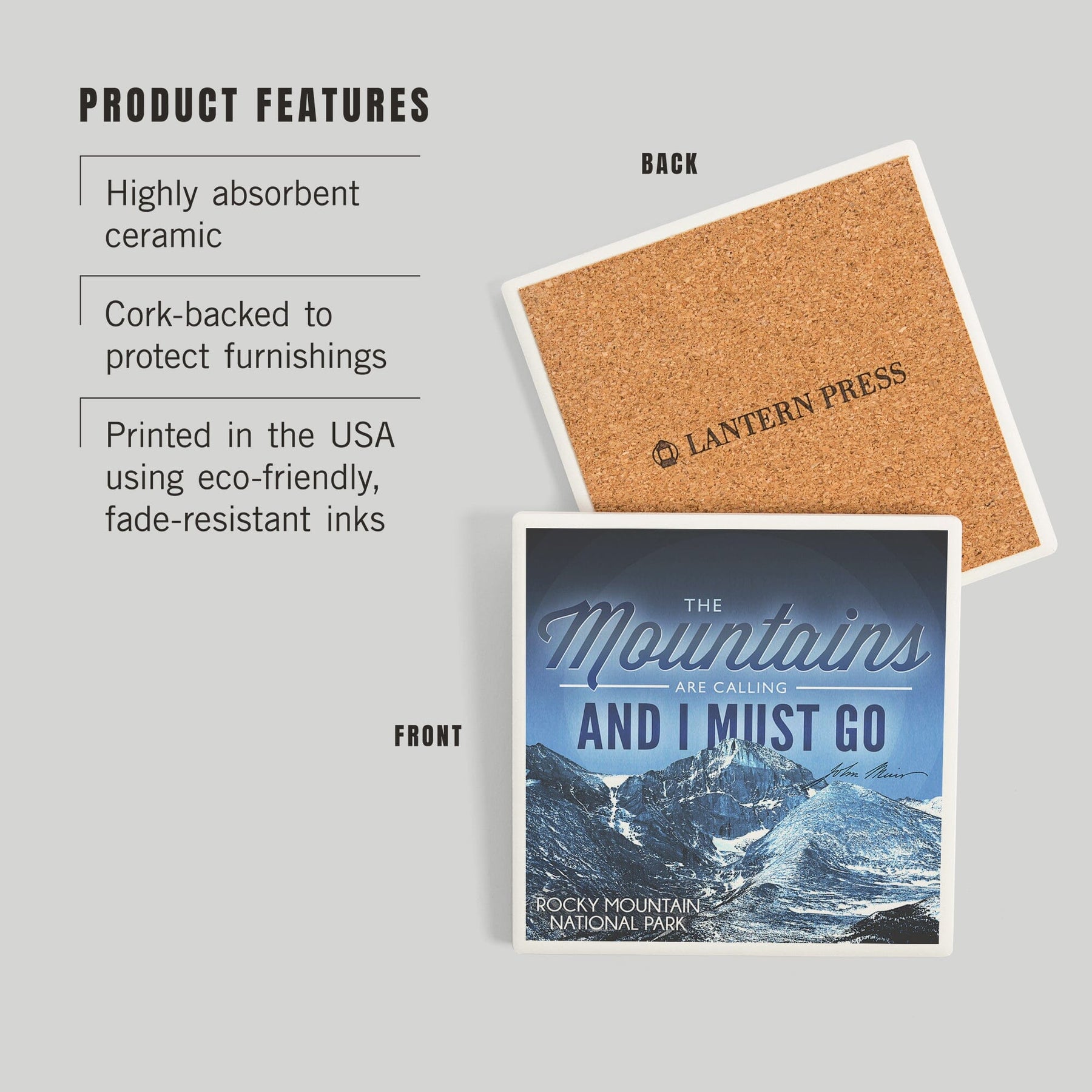John Muir, The Mountains are Calling, Rocky Mountain National Park, Coasters Coasters Lantern Press