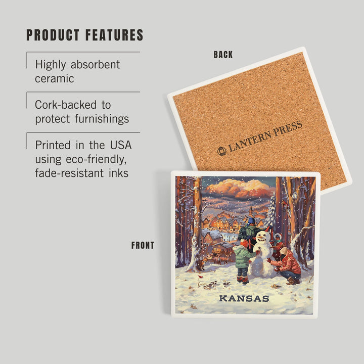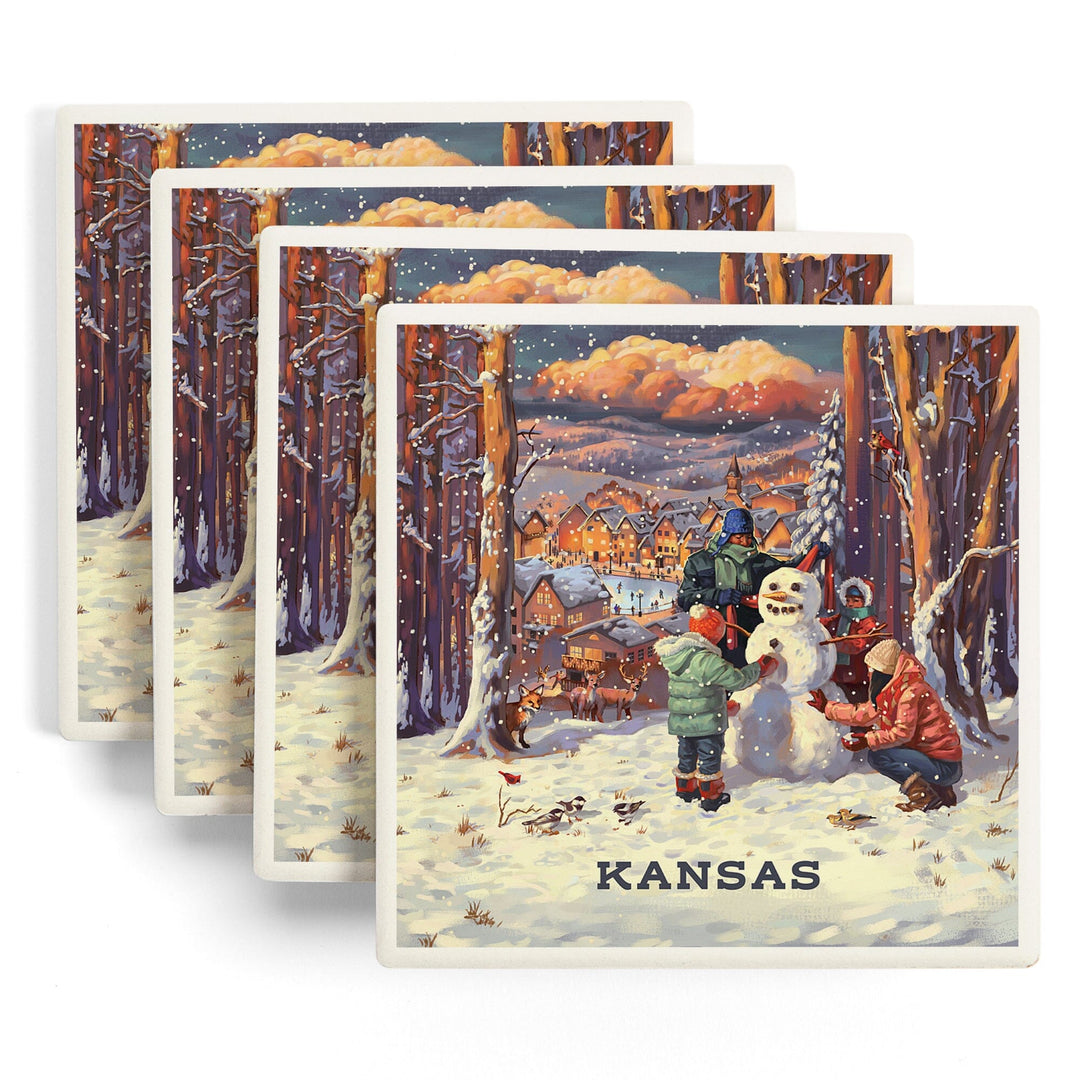 Kansas, Merry and Bright, Vintage Snowman, Coasters Coasters Lantern Press