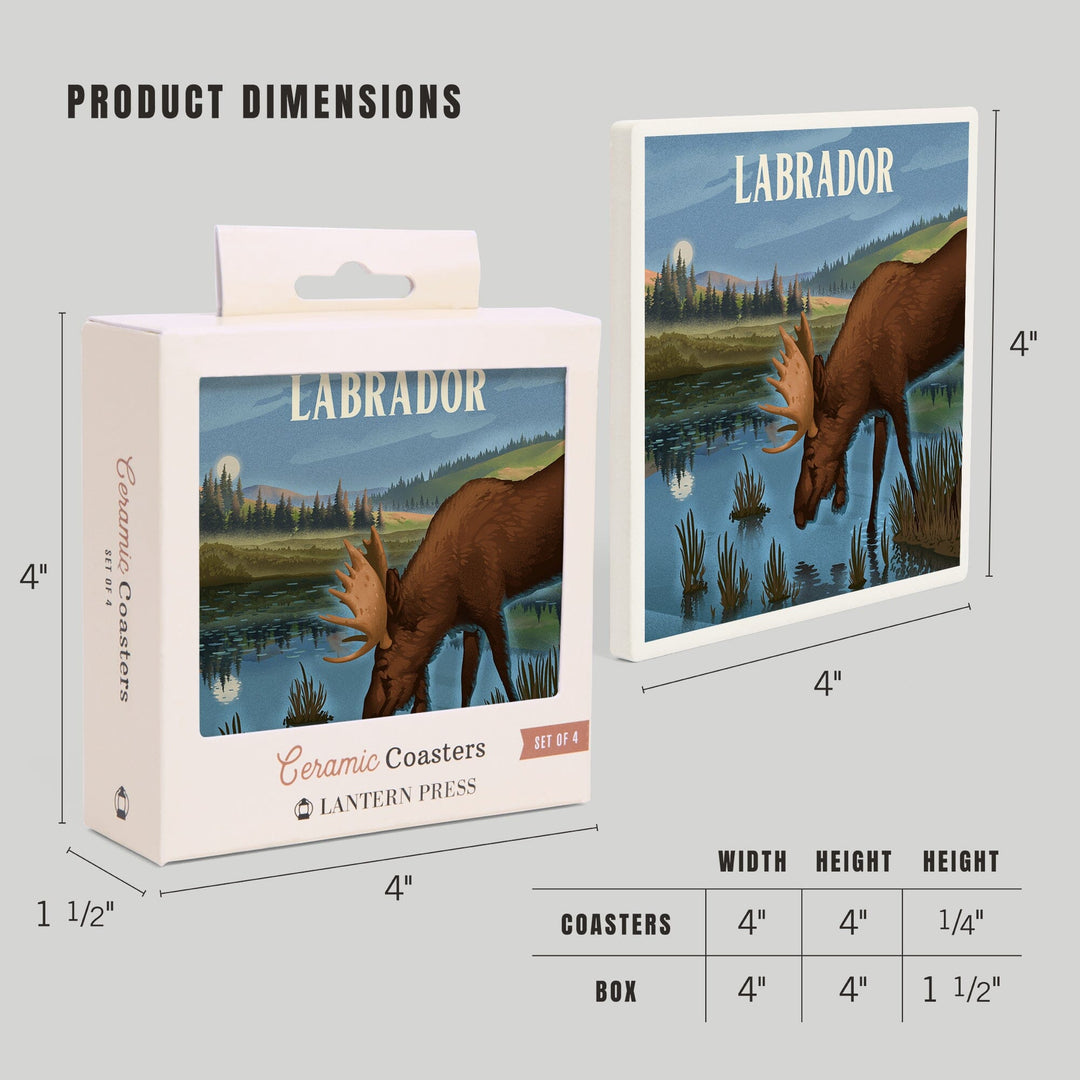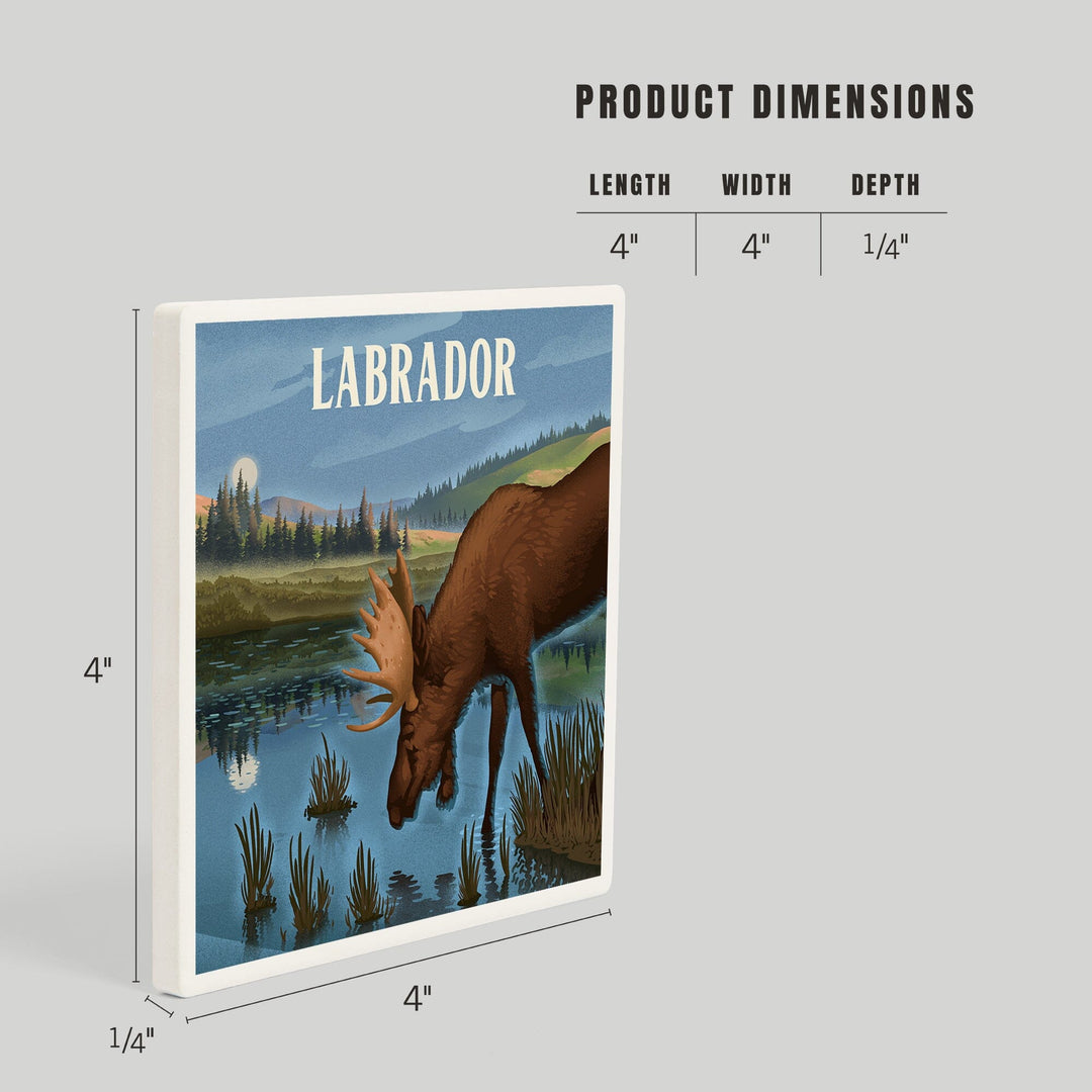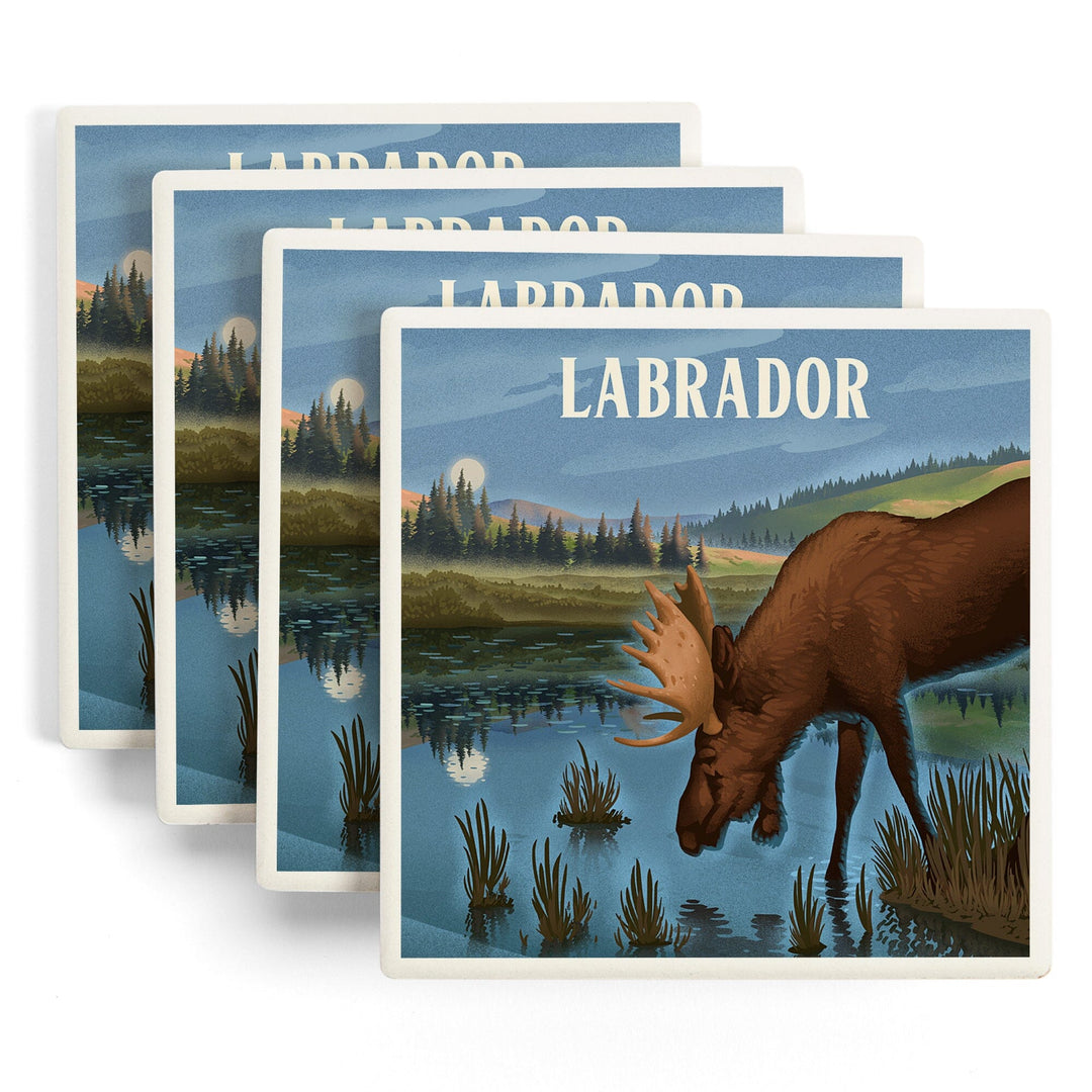 Labrador, Lithograph, Reflection Pond and Bull Moose, Coasters Coasters Lantern Press