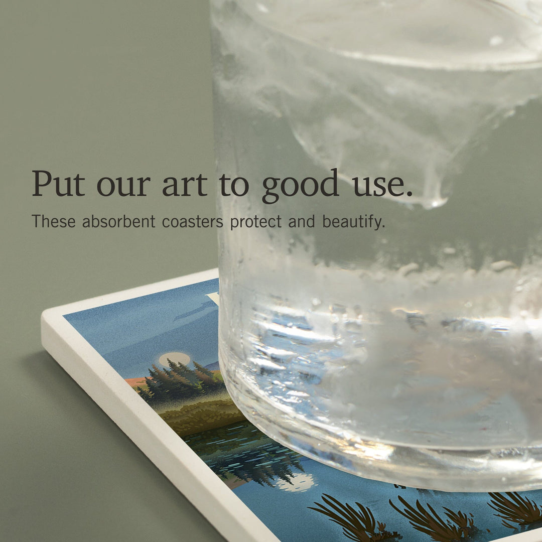 Michigan, Canoe and Lake Scene, Coasters Coasters Lantern Press