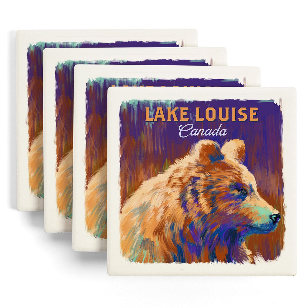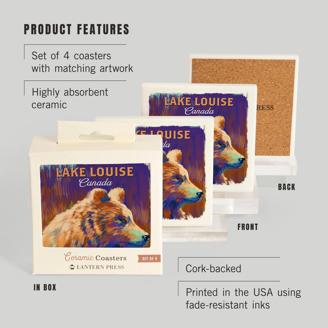 Lake Louise, Canada, Grizzly Bear, Vivid, Coasters Coasters Lantern Press