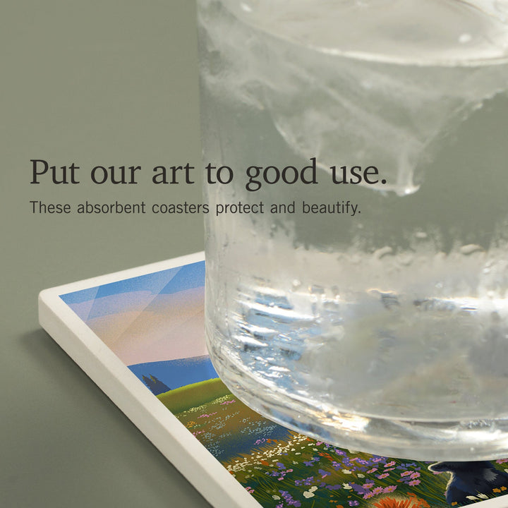 Maine, Lithograph, Bear Family in Field, Coasters