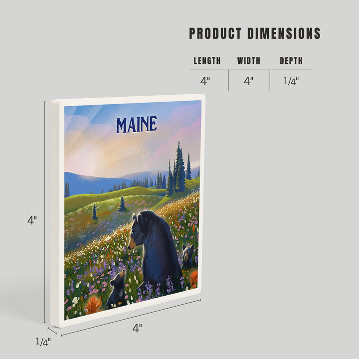 Maine, Lithograph, Bear Family in Field, Coasters Coasters Lantern Press
