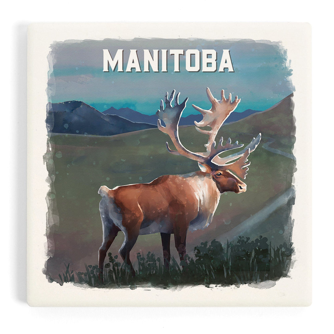 Manitoba, Watercolor Study, Caribou, Coasters Coasters Lantern Press