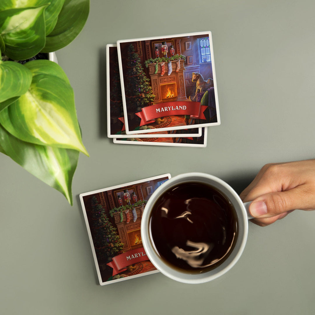 Maryland, Christmas Morning, Coasters Coasters Lantern Press