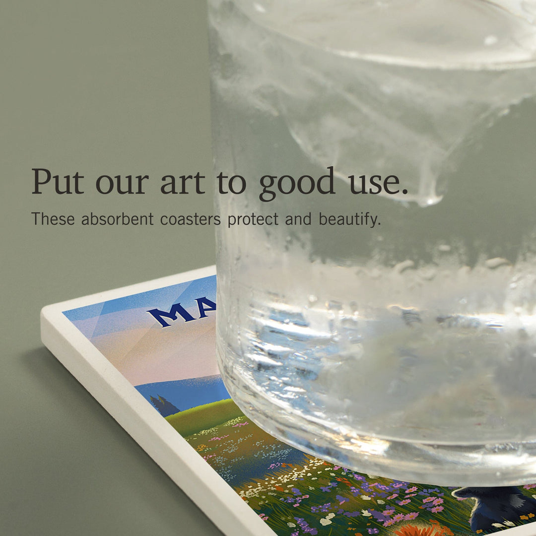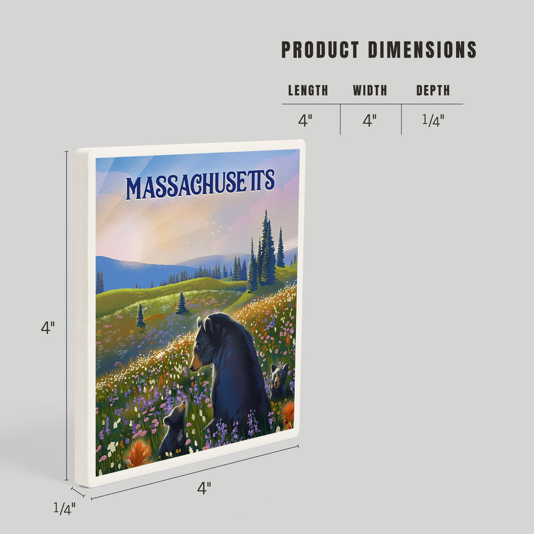 Massachusetts, Lithograph, Bear Family in Field, Coasters