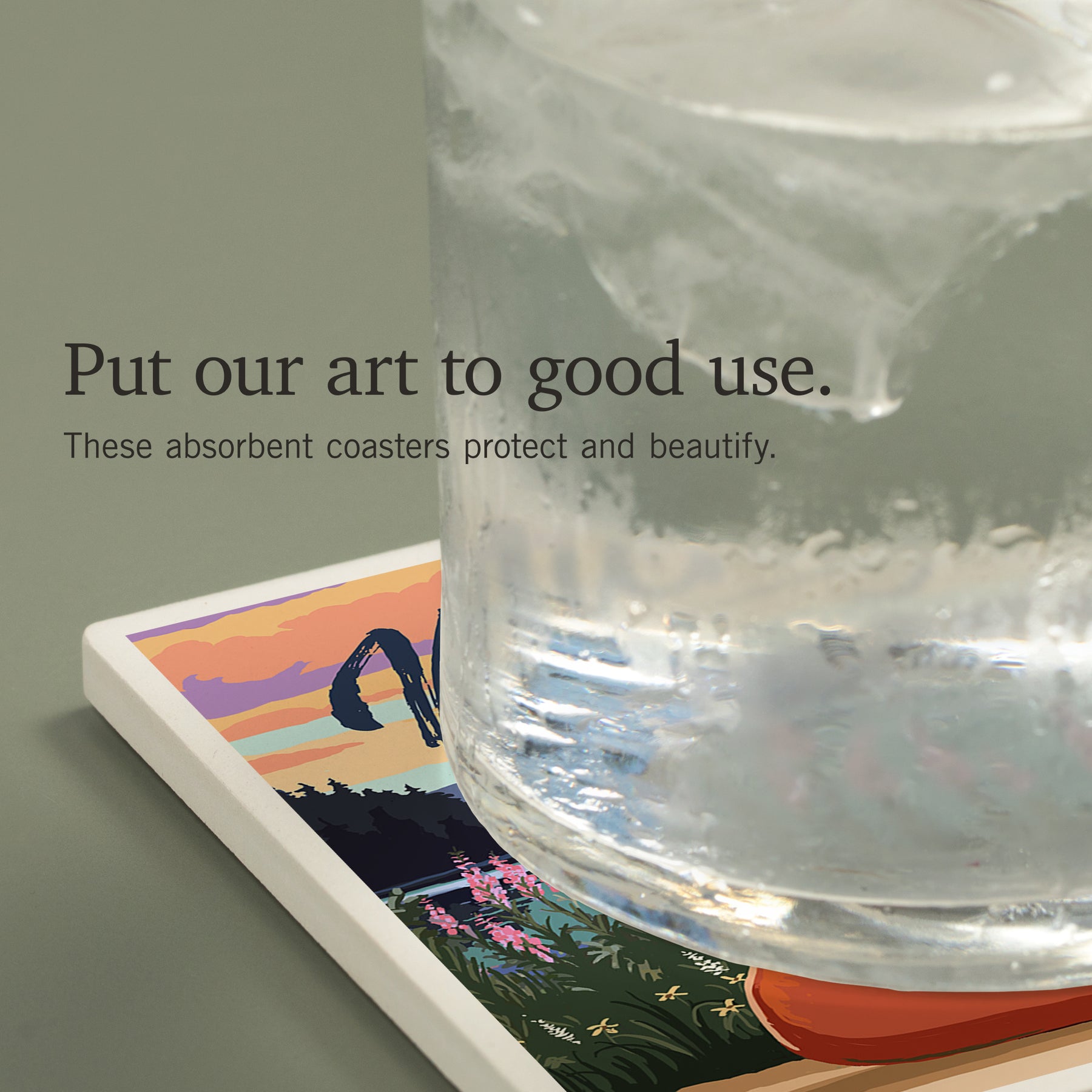 Seattle Skyline, Bigfoot, WPA Style, Coasters