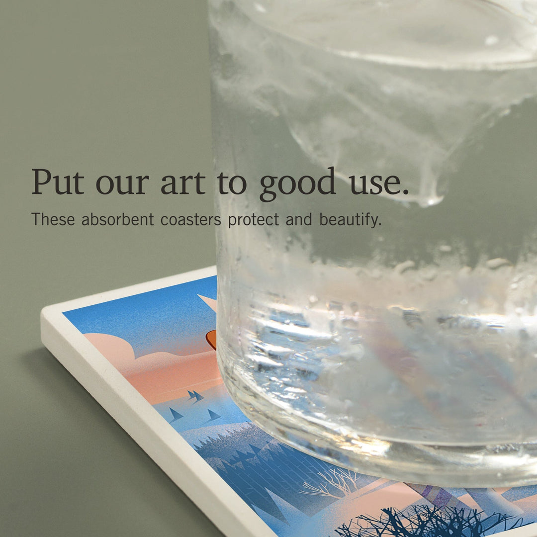 Michigan, Prepare for Takeoff, Skis in Snowbank, Coasters