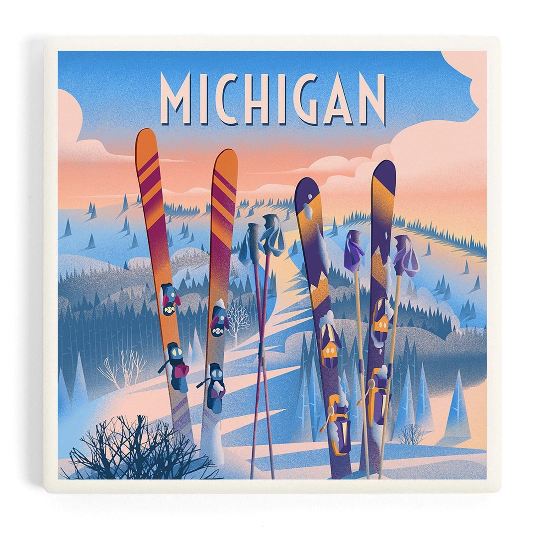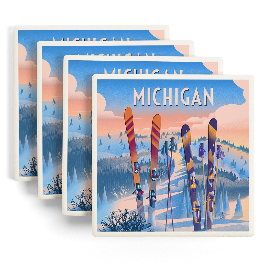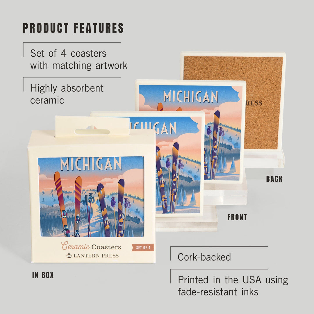 Michigan, Prepare for Takeoff, Skis in Snowbank, Coasters Coasters Lantern Press