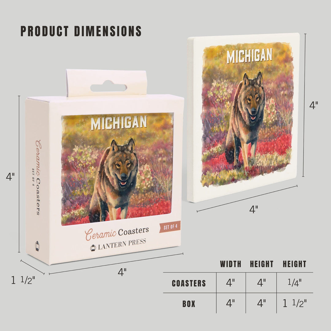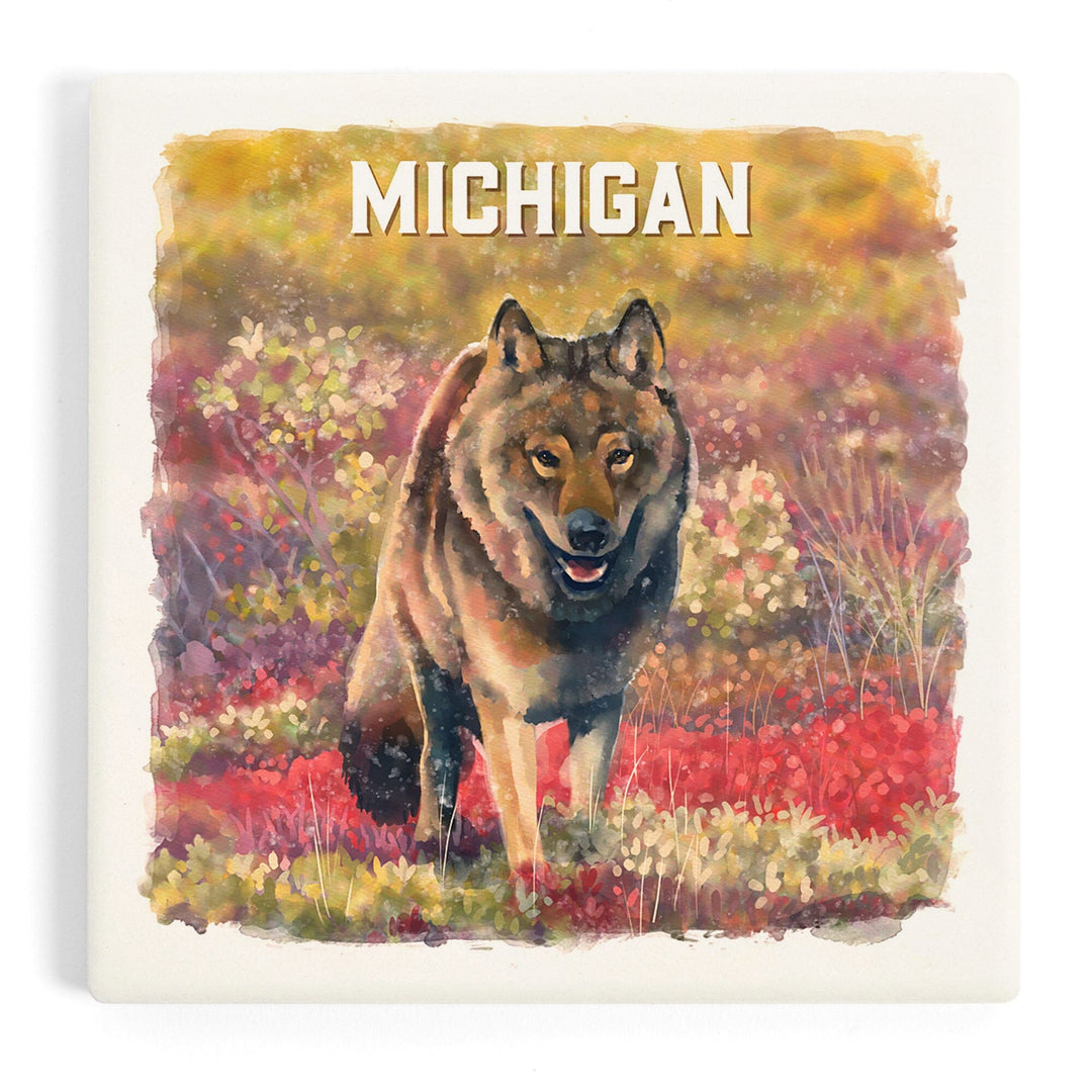 Michigan, Watercolor Study, Gray Wolf, Coasters Coasters Lantern Press