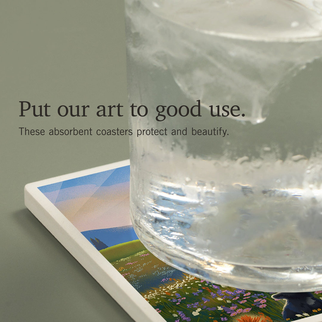 Montana, Lithograph, Bear Family in Field, Coasters Coasters Lantern Press