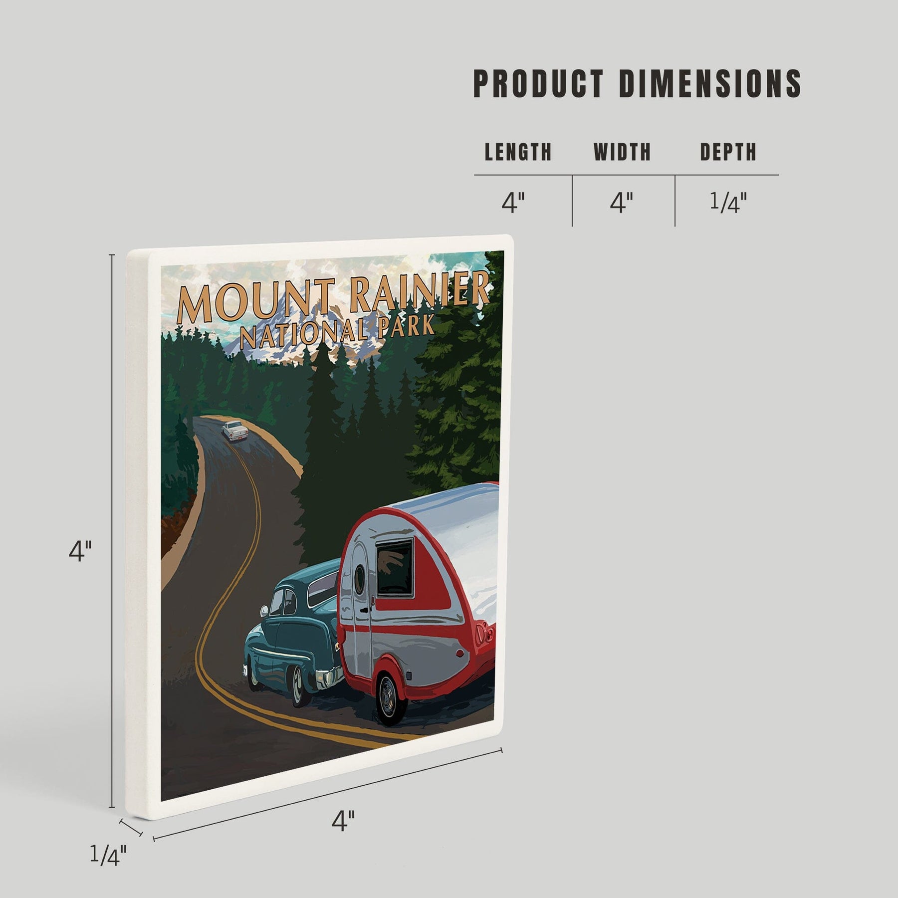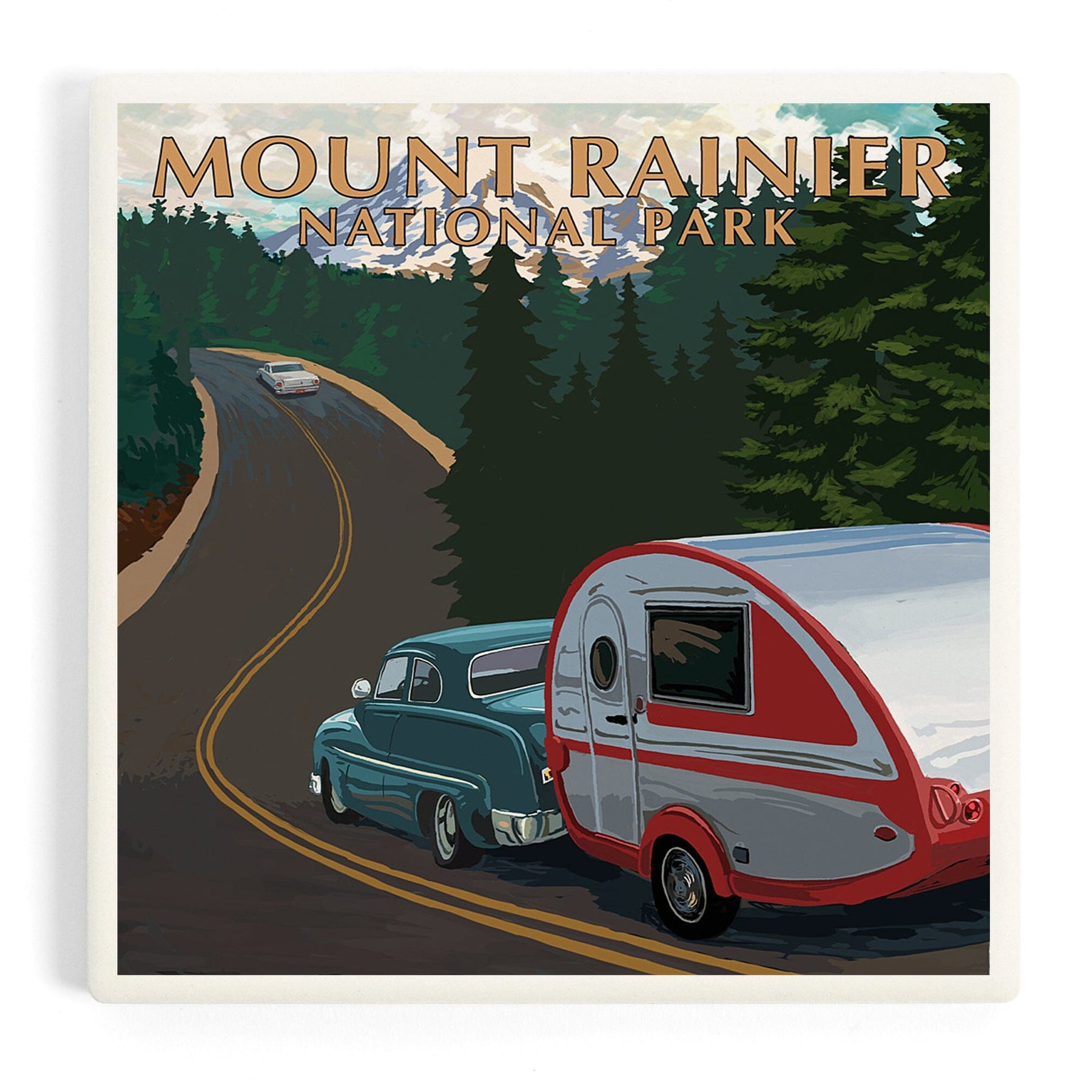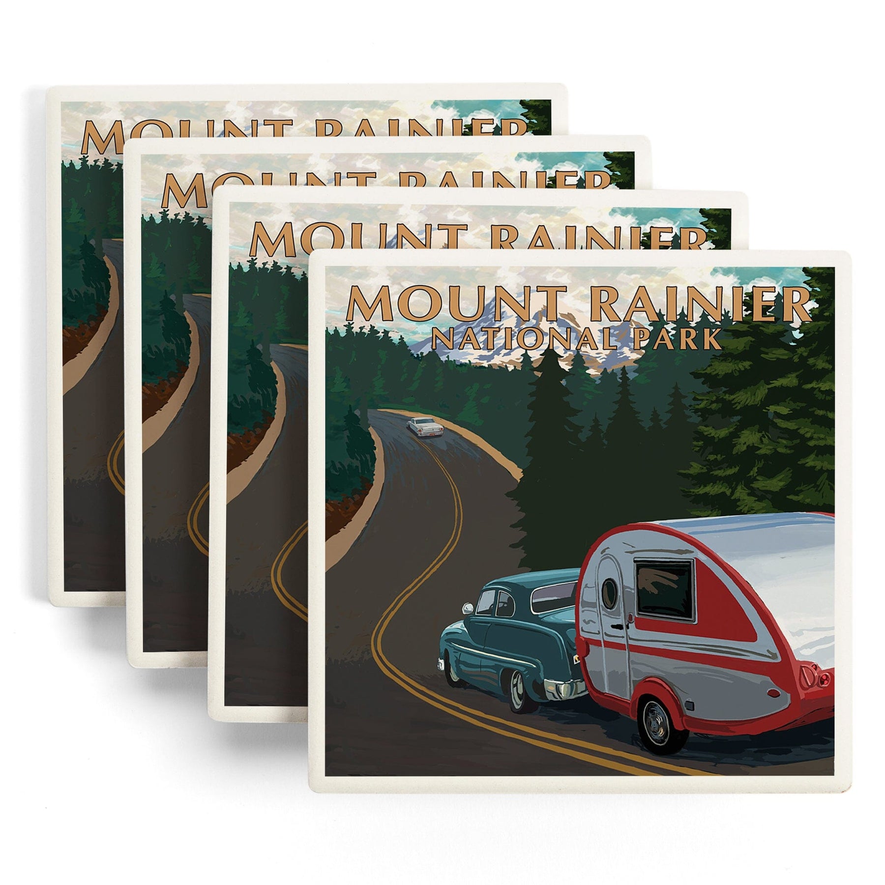 Mount Rainier National Park, Washington, Retro Camper on Road, Coasters