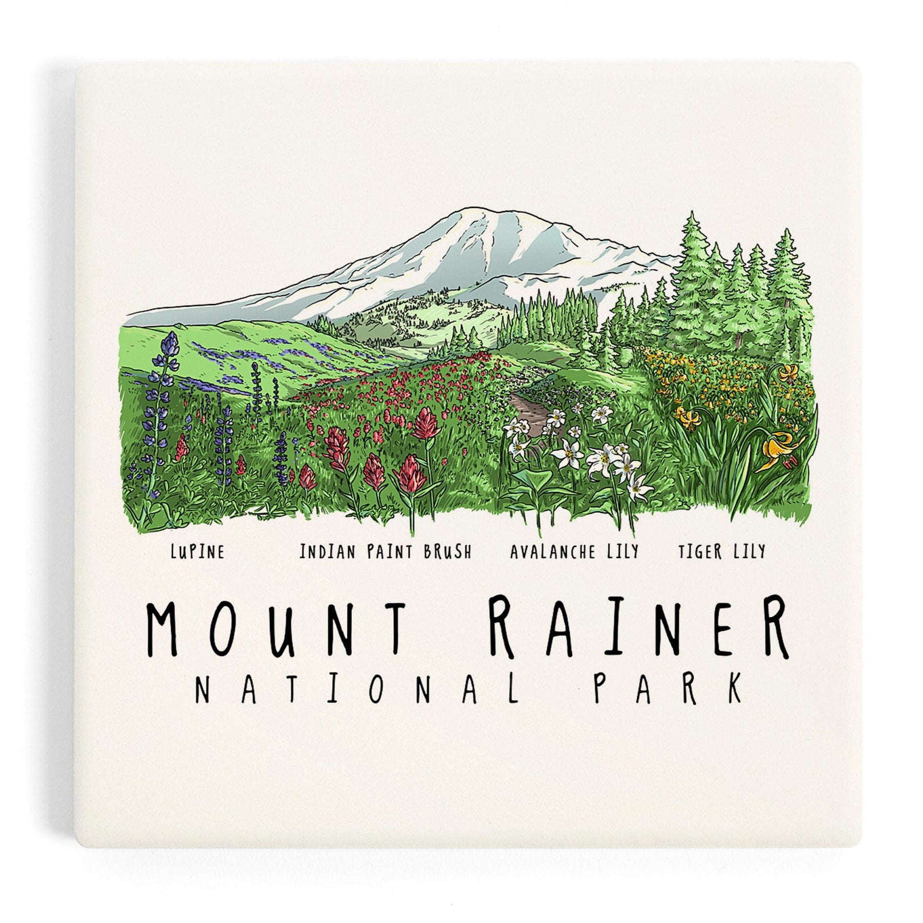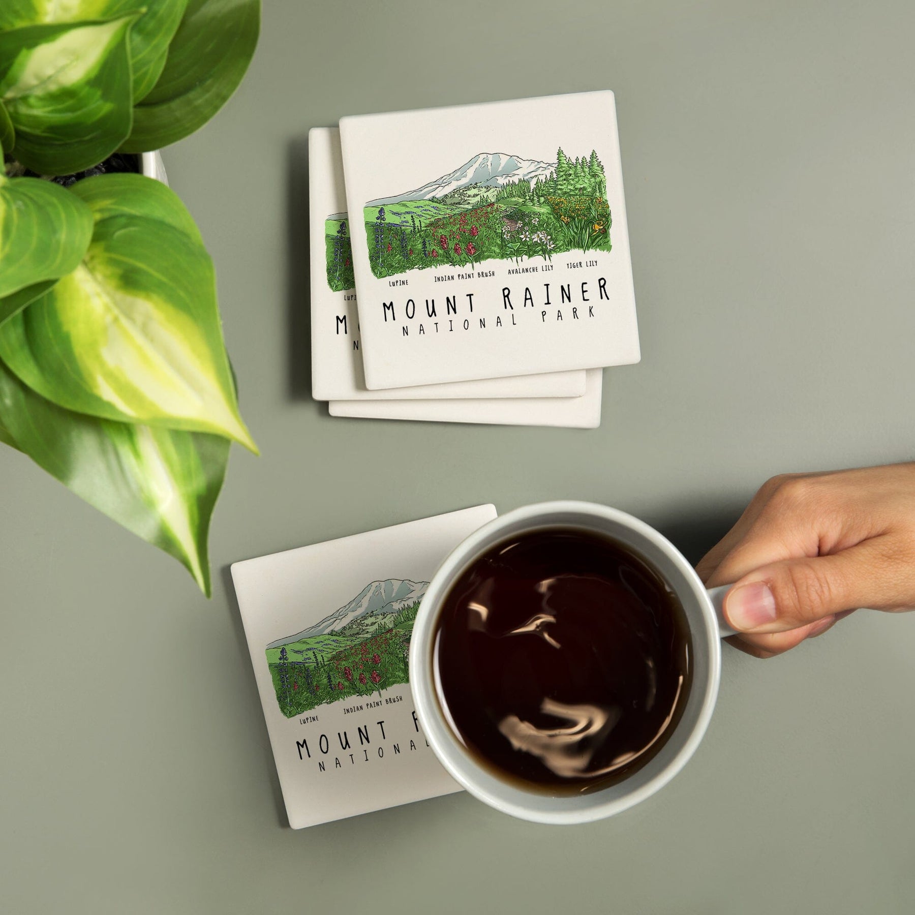 Mount Rainier National Park, Washington, Wildflower Montage, Coasters Coasters Lantern Press