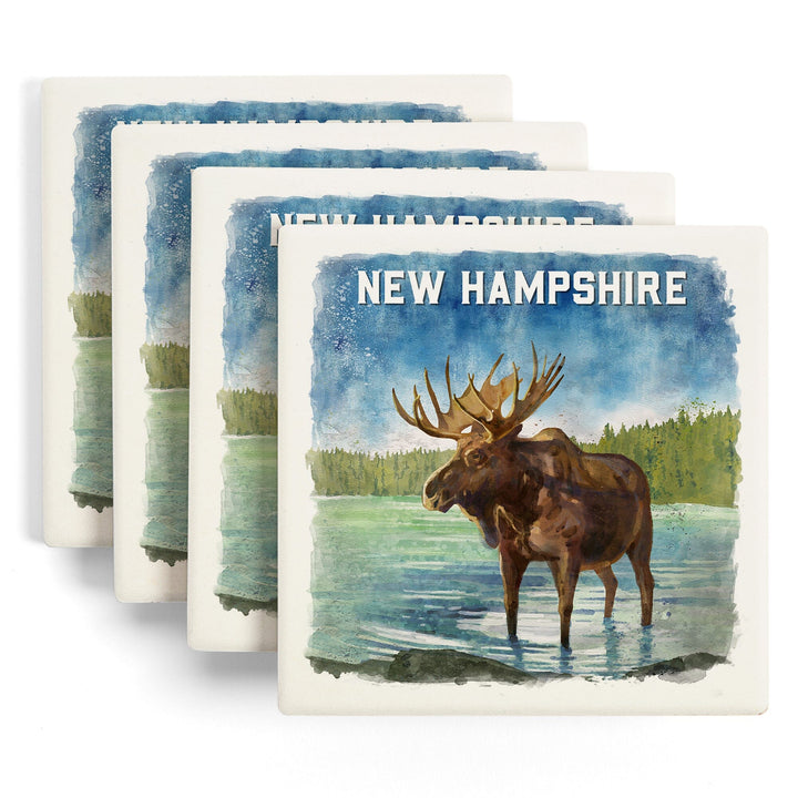 New Hampshire, Watercolor Study, Moose, Coasters Coasters Lantern Press