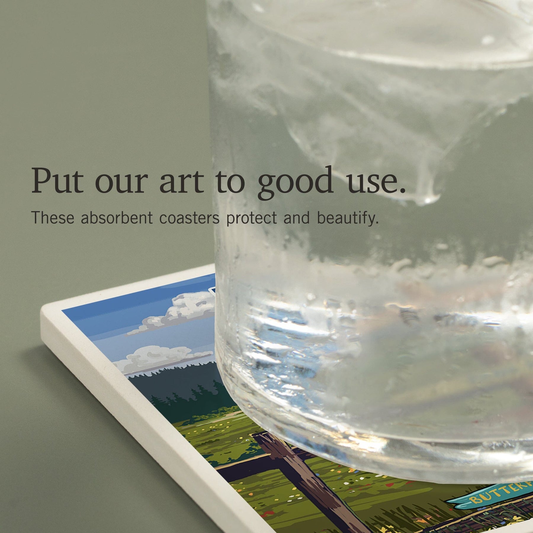 North Dakota, Signpost, Meadow, Coasters Coasters Lantern Press