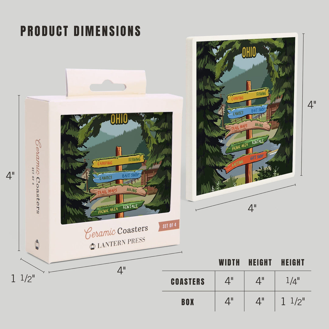 Ohio, Signpost, Forest and Camp, Coasters Coasters Lantern Press