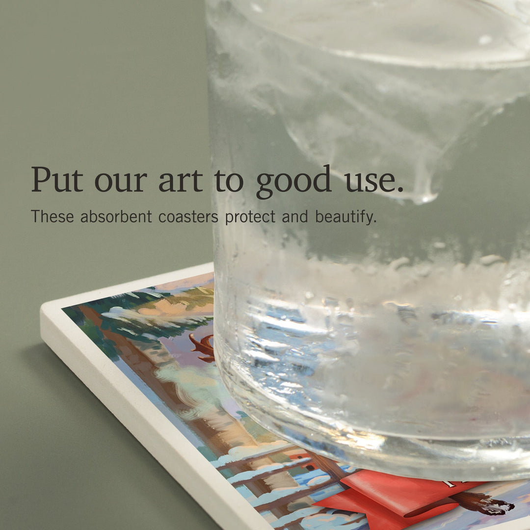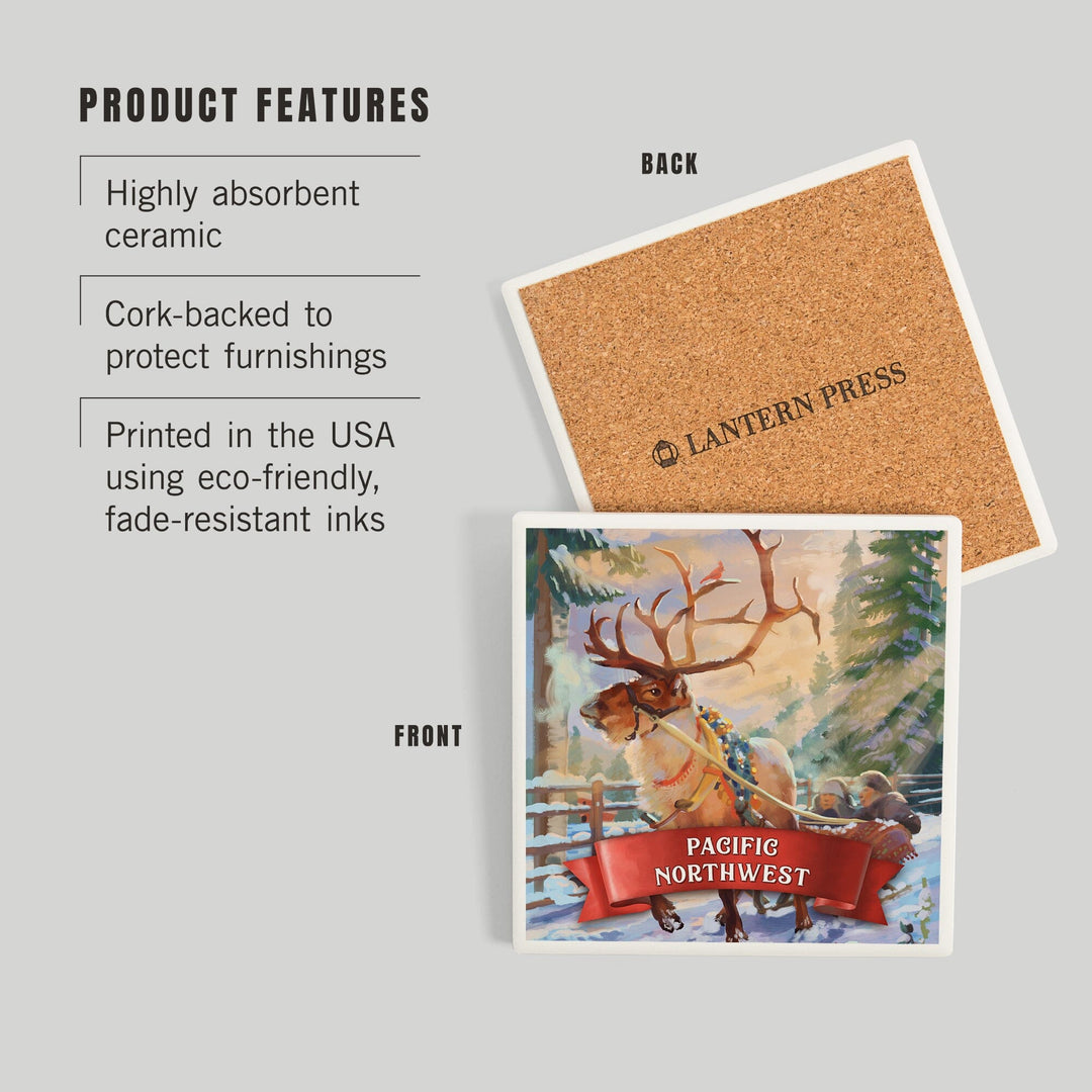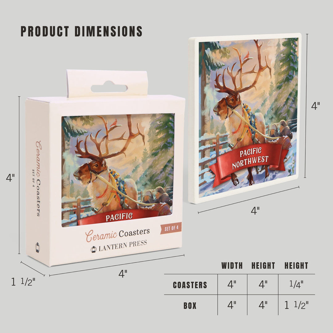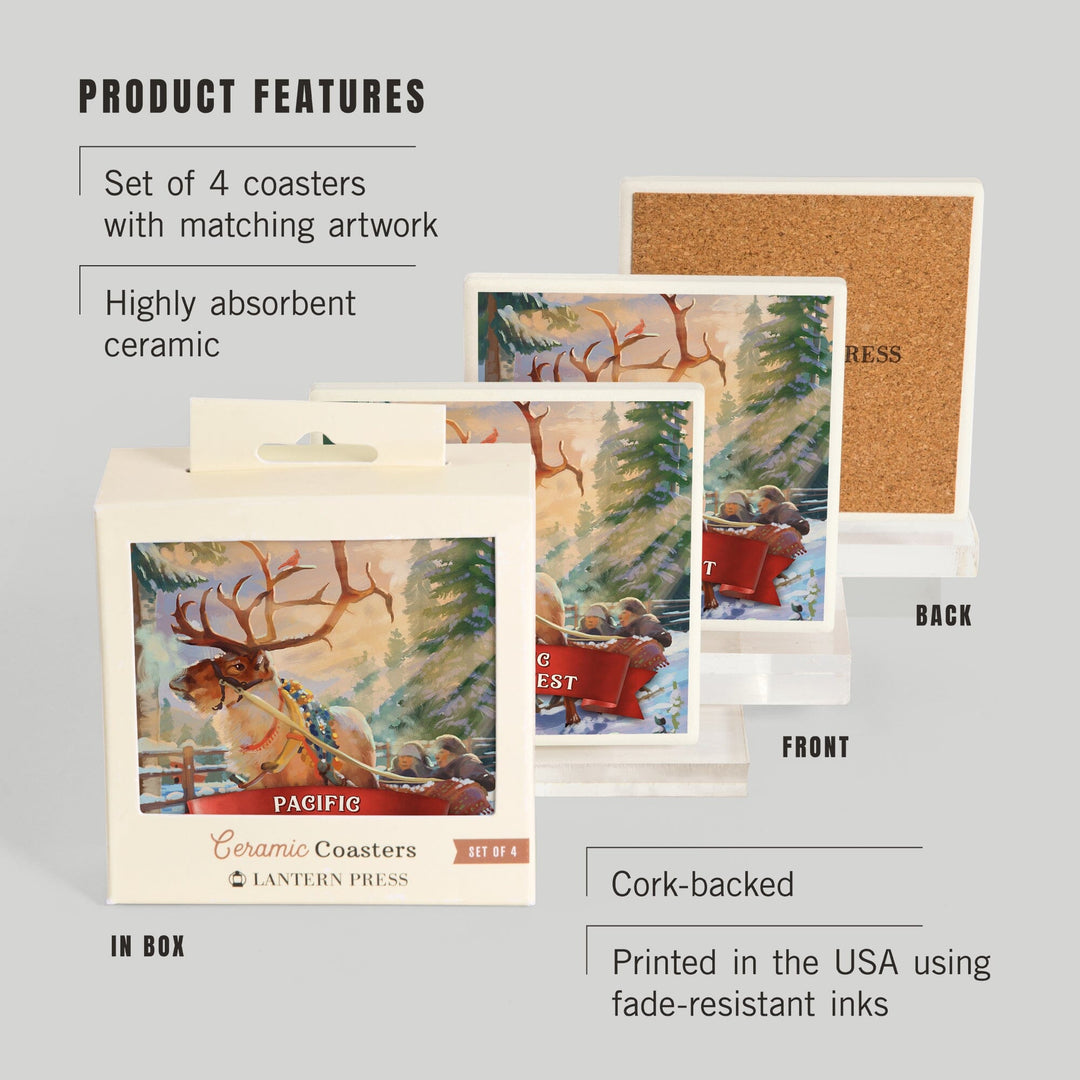 Pacific Northwest, Christmas Sleigh Ride, Coasters Coasters Lantern Press