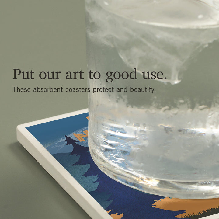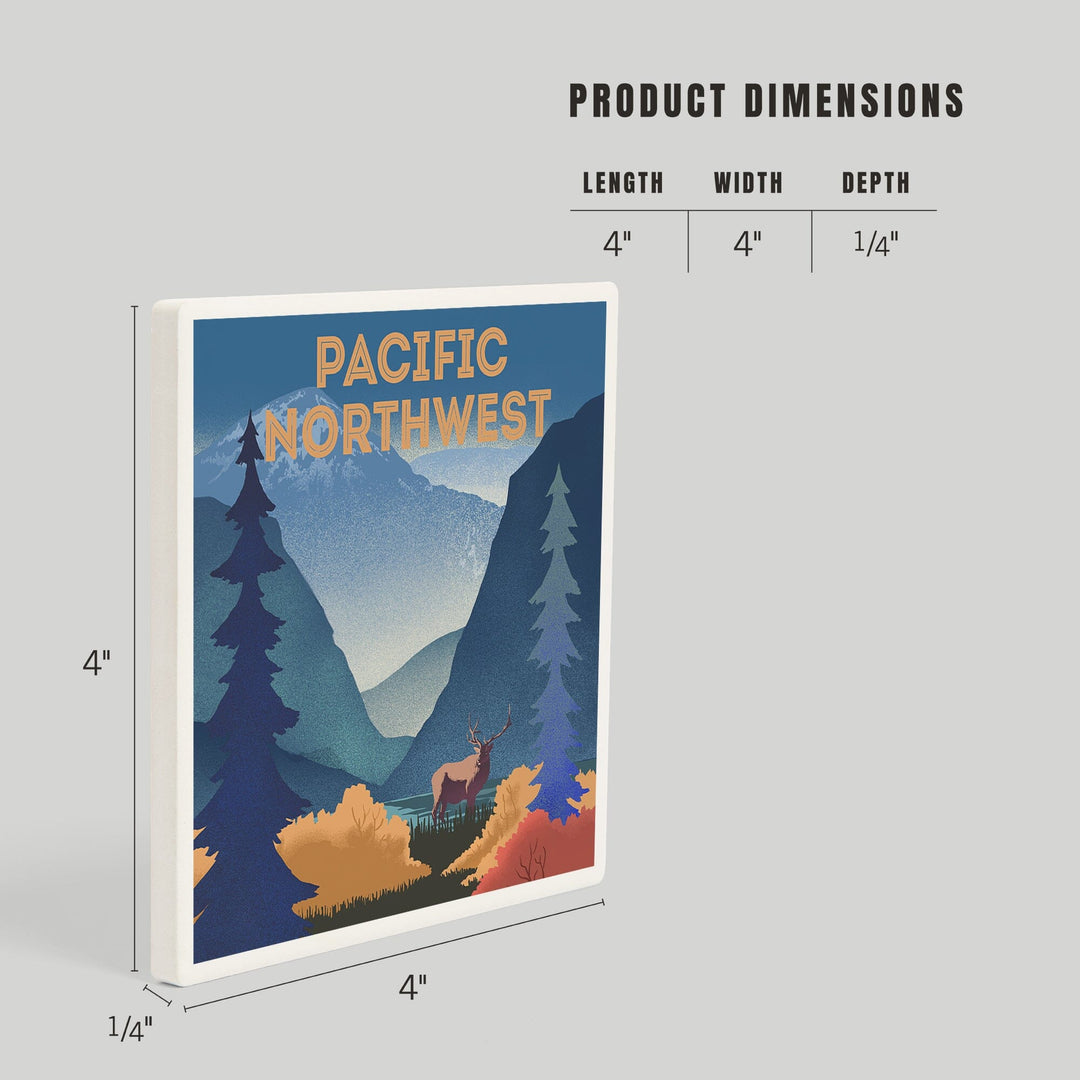 Pacific Northwest, Lithograph, Elk and Mountains Scene, Coasters Coasters Lantern Press
