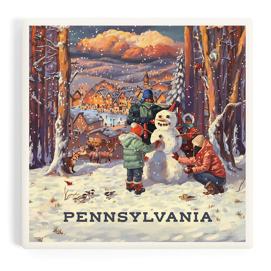 Pennsylvania, Merry and Bright, Vintage Snowman, Coasters Coasters Lantern Press