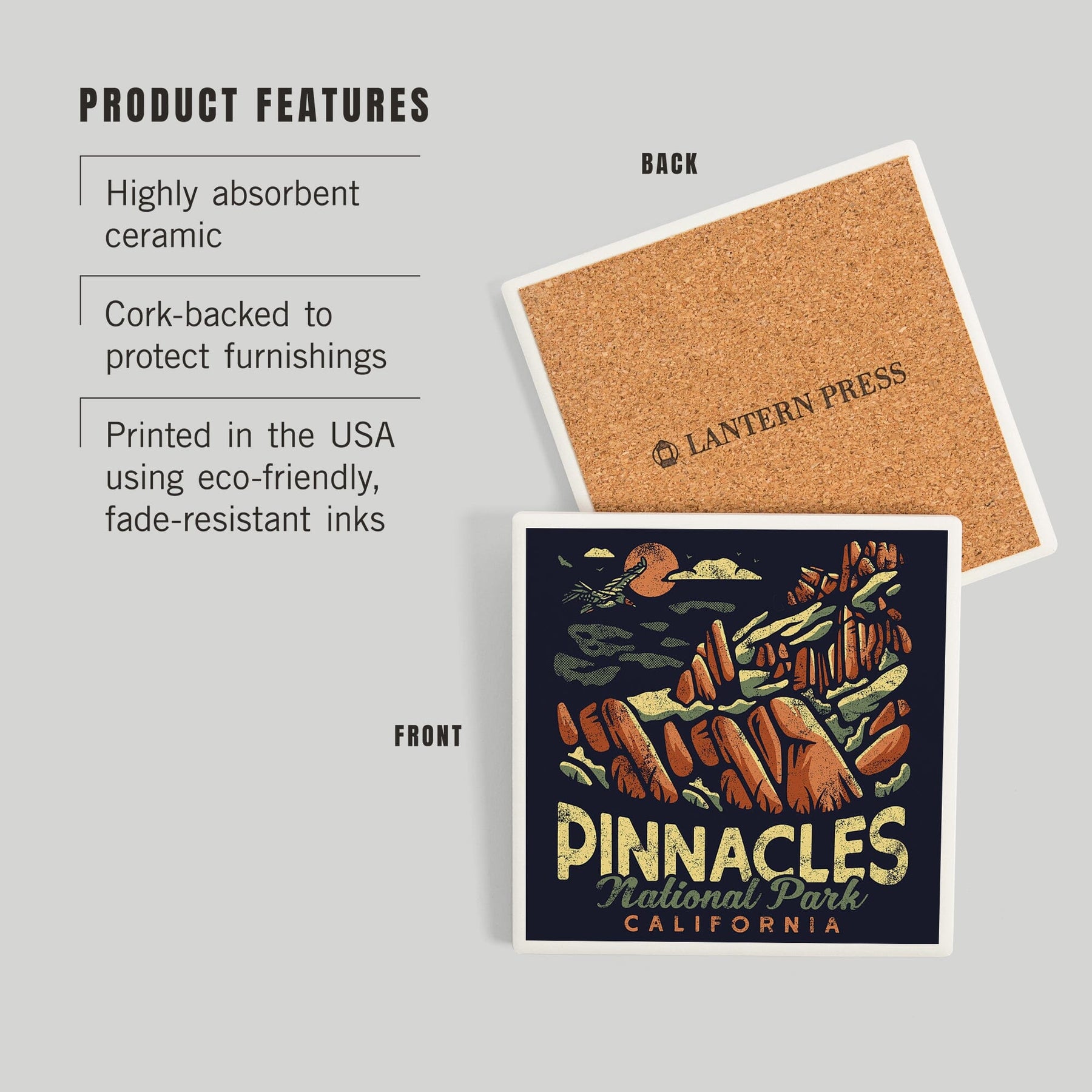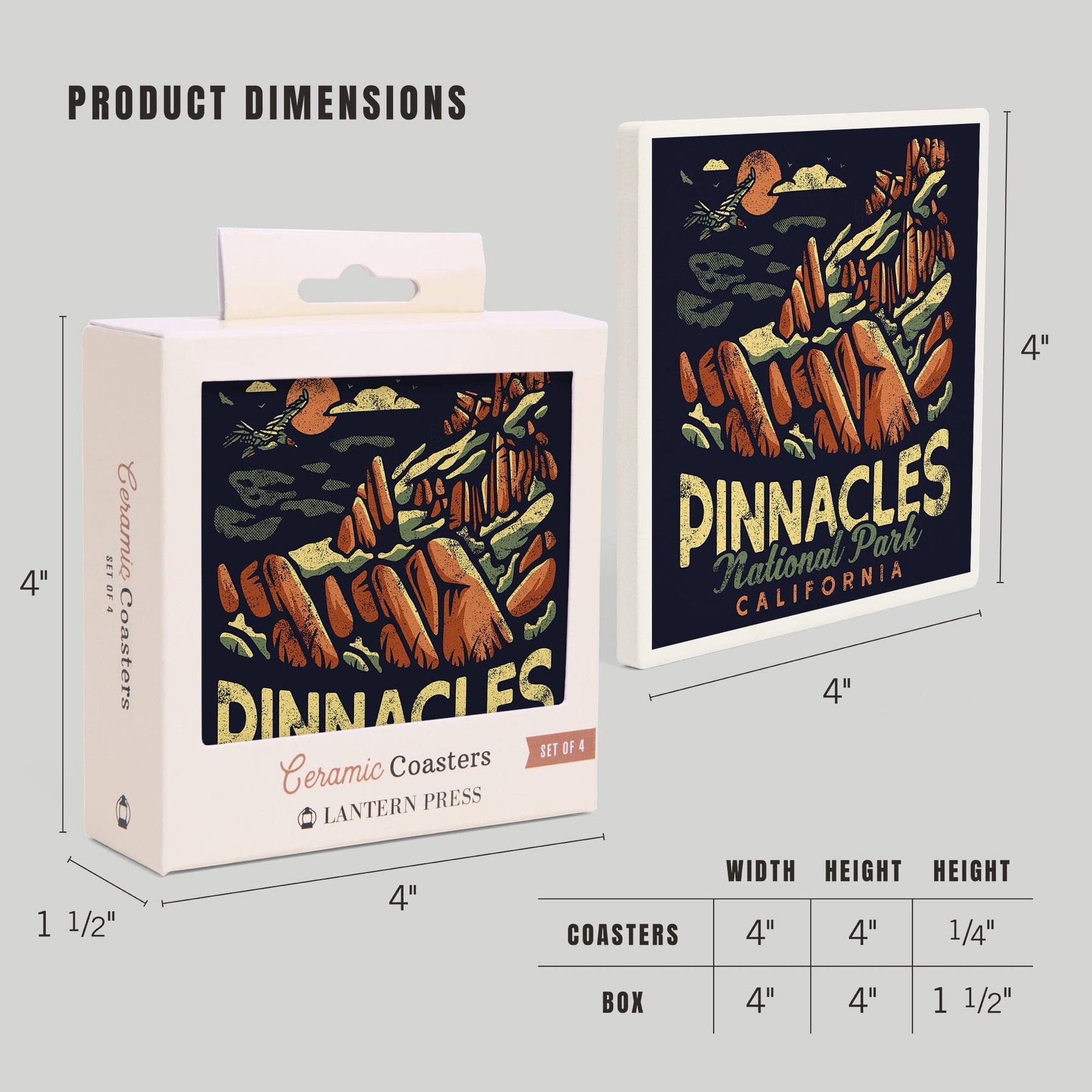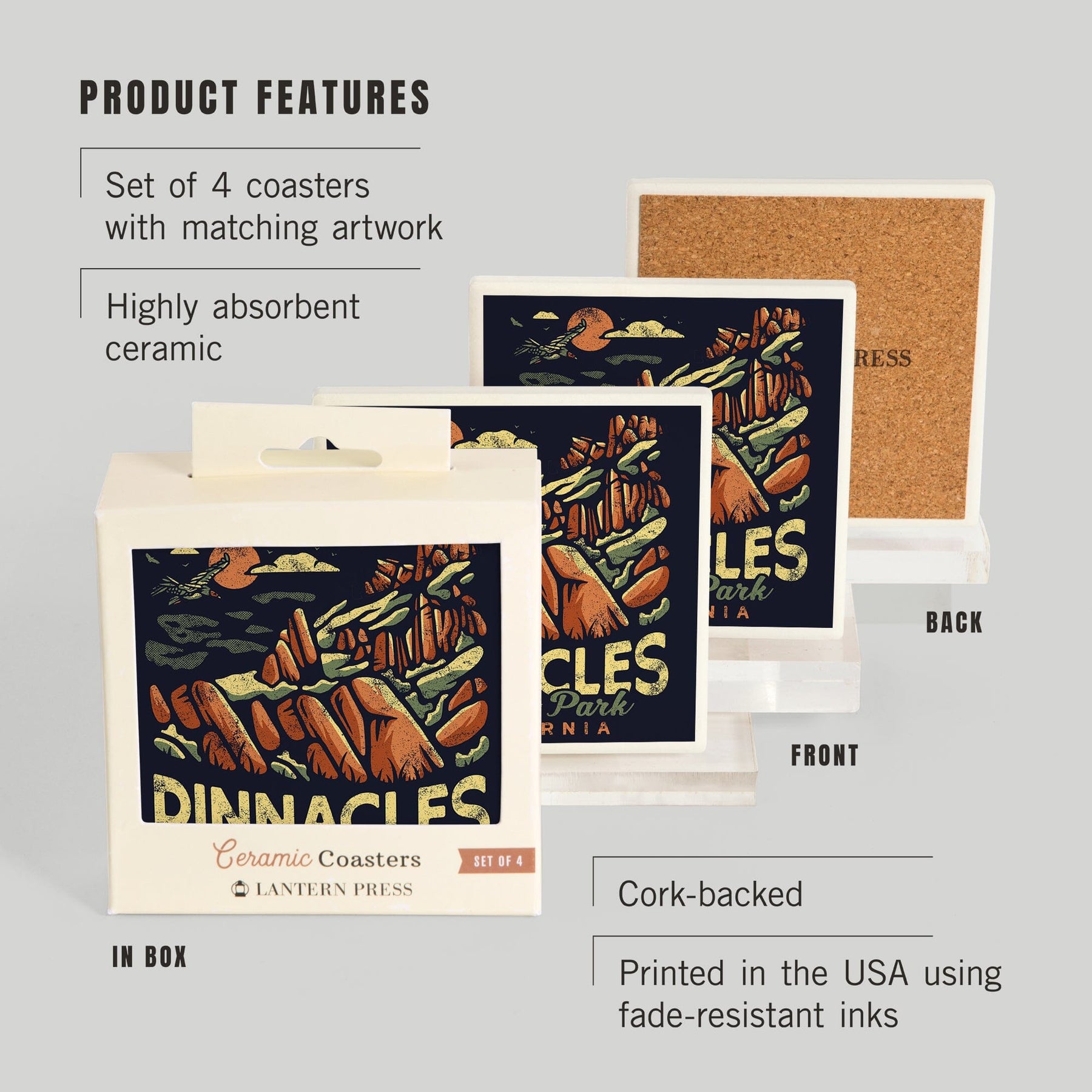 Pinnacles National Park, Distressed Vector, Coasters Coasters Lantern Press
