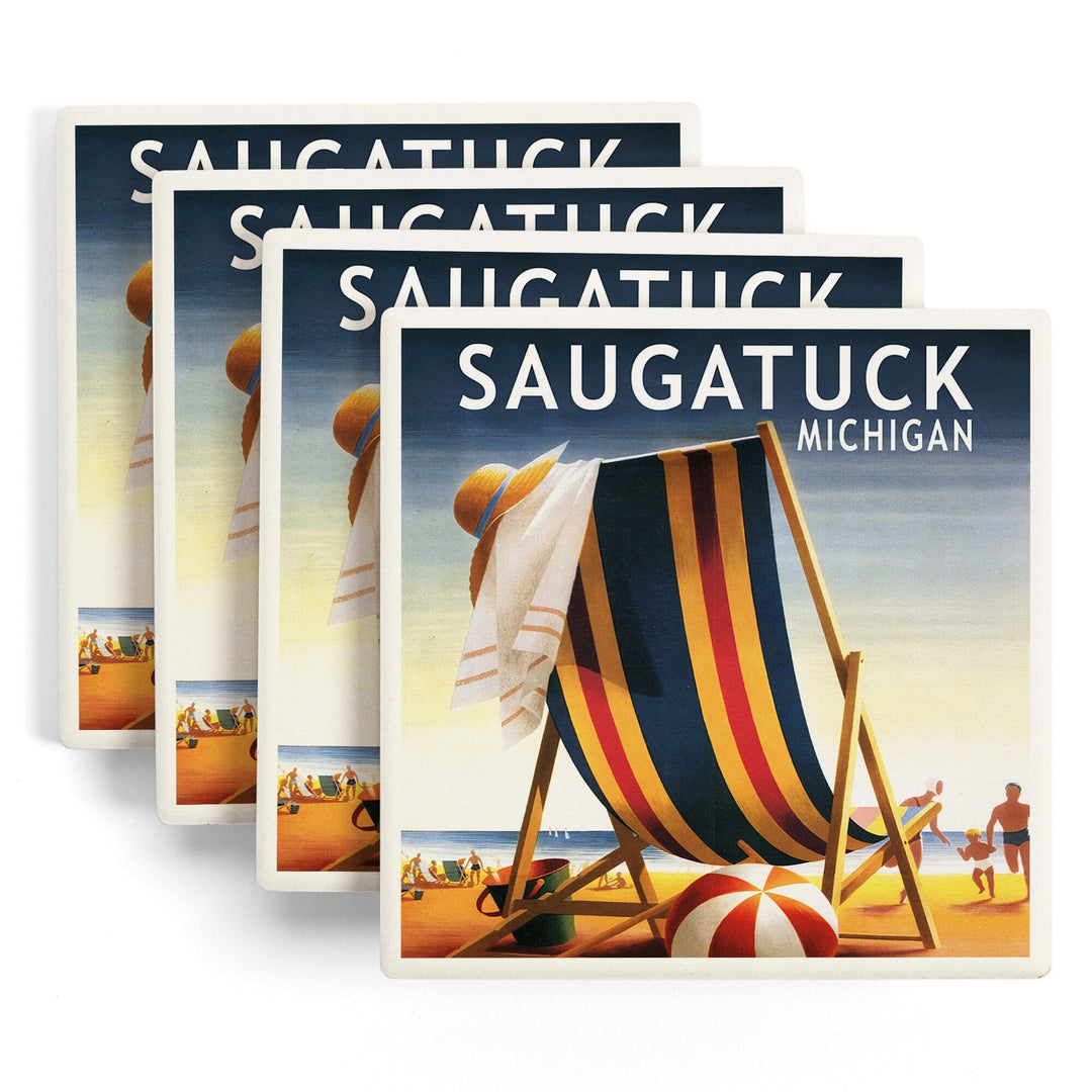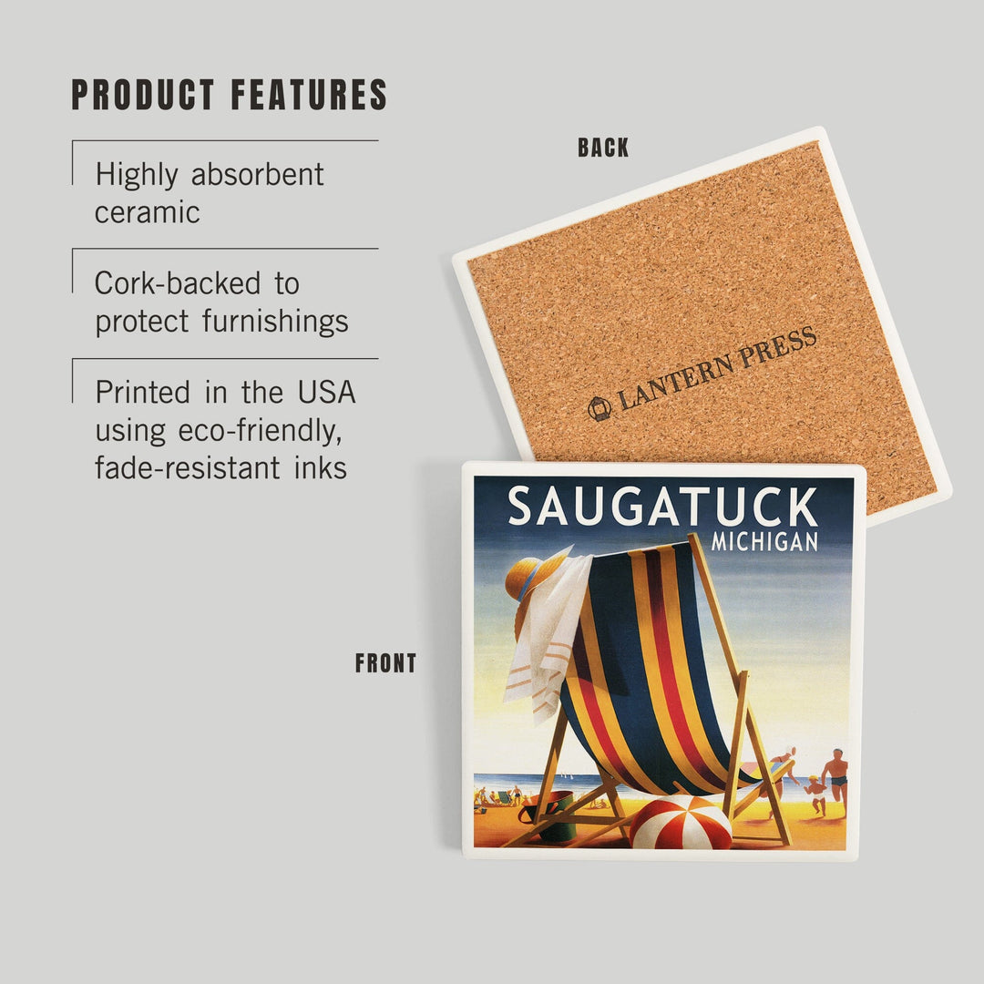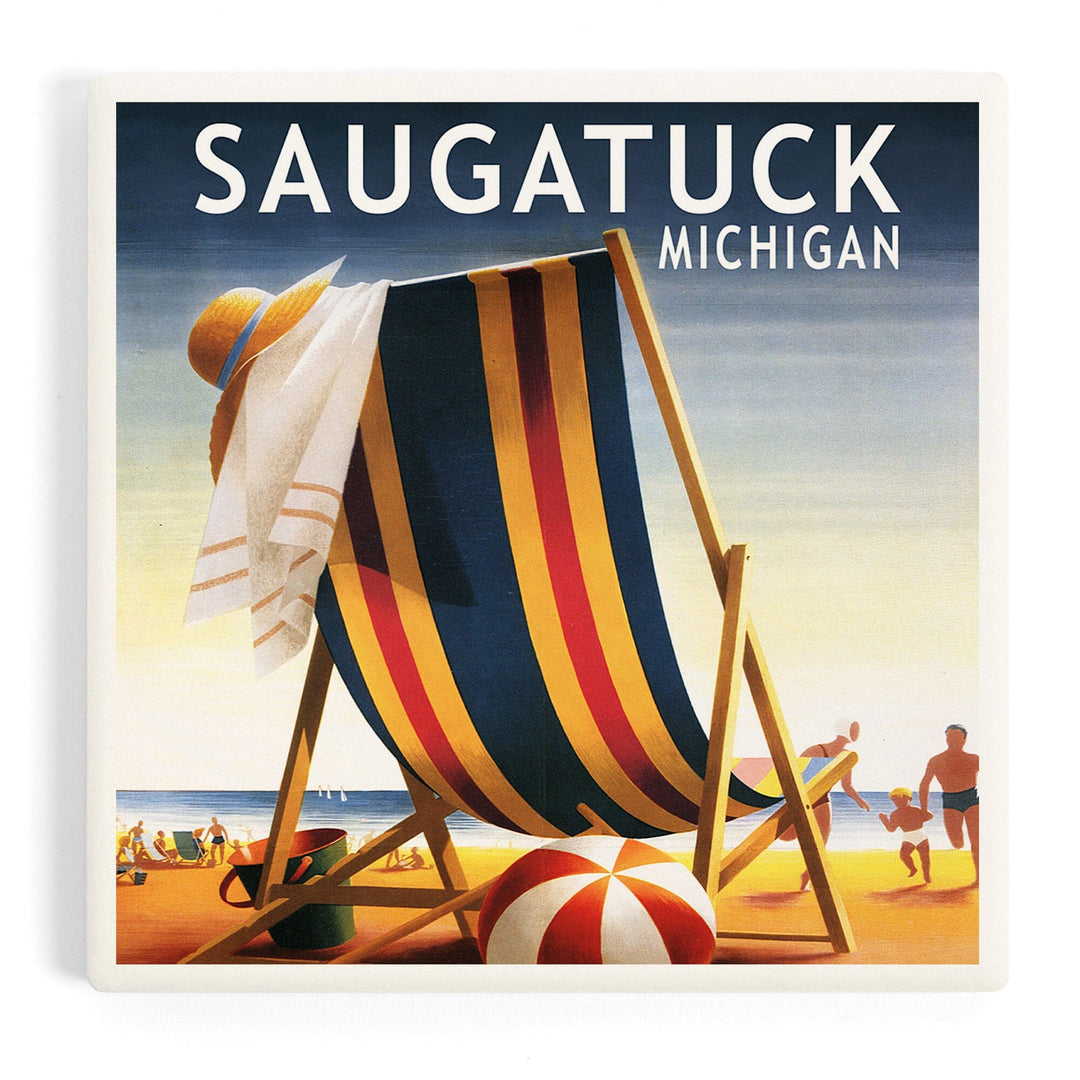 Saugatuck, Michigan, Beach Chair and Ball, Coasters Coasters Lantern Press