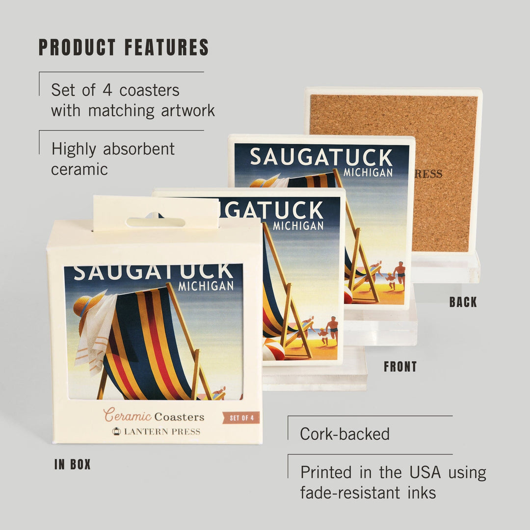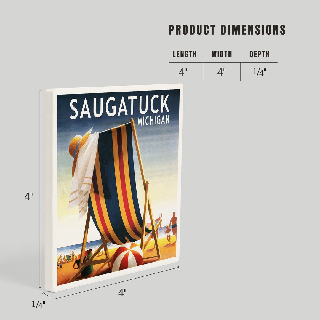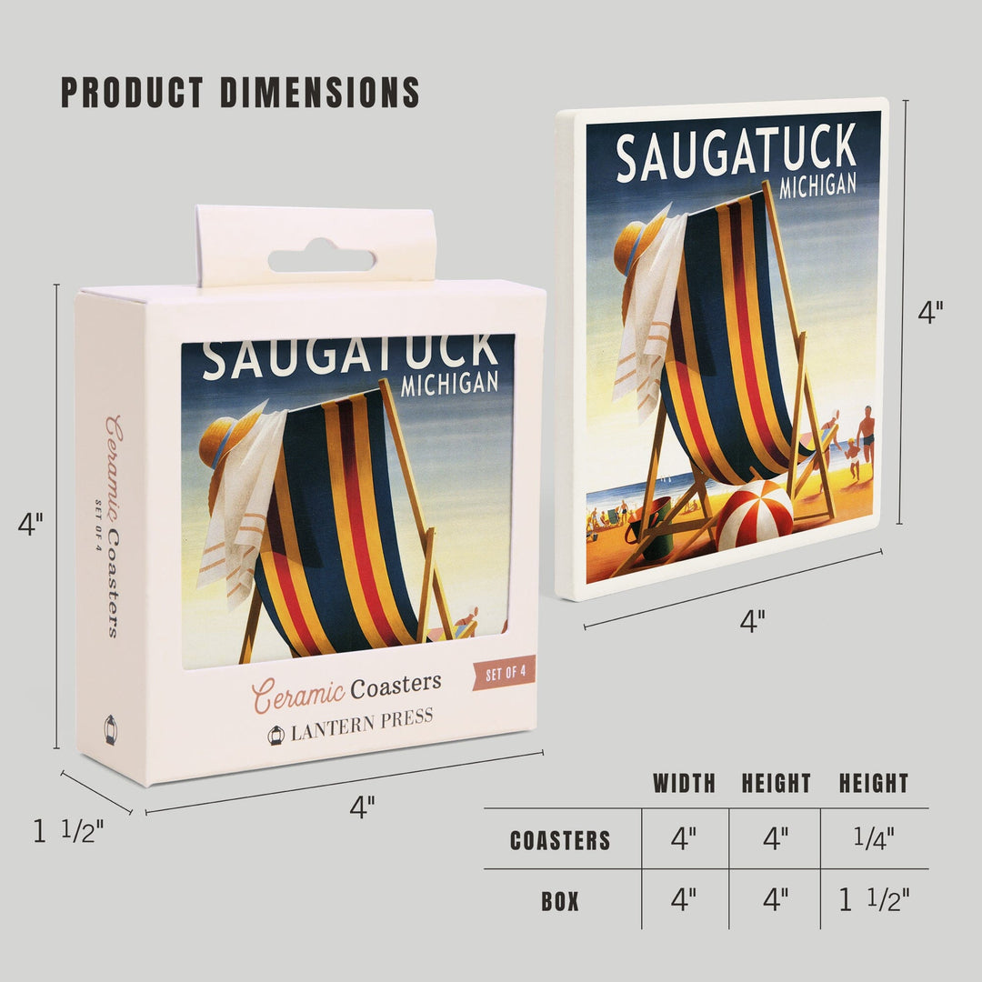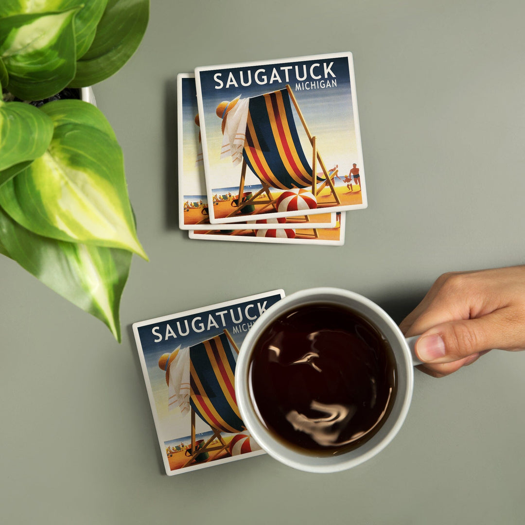 Saugatuck, Michigan, Beach Chair and Ball, Coasters Coasters Lantern Press
