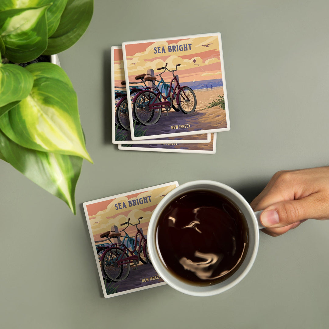 Sea Bright, New Jersey, Painterly, The Beach Is Calling, Beach Bikes, Coasters Coasters Lantern Press