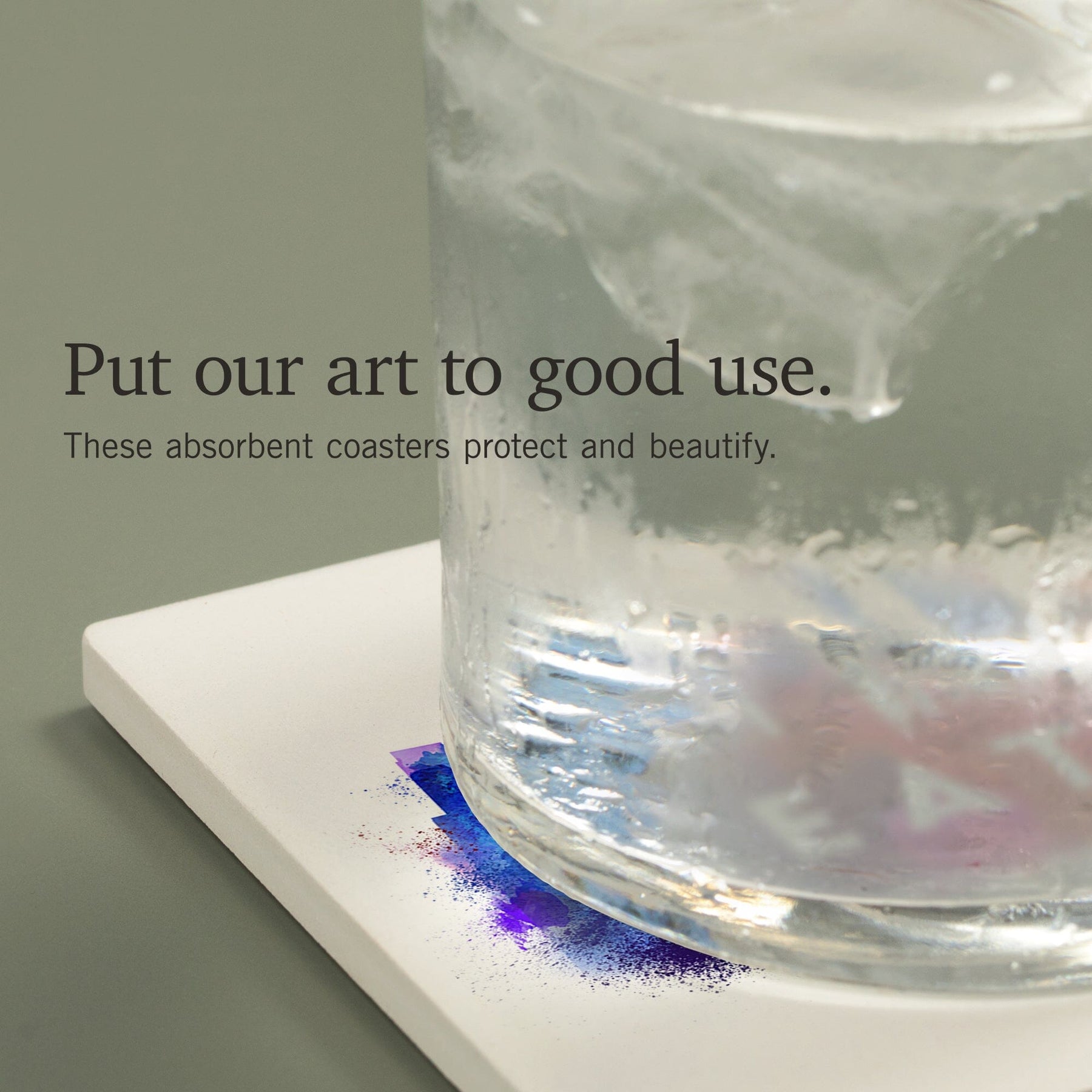 Seattle, Washington, Skyline Abstract (White), Indigos and Reds, Coasters