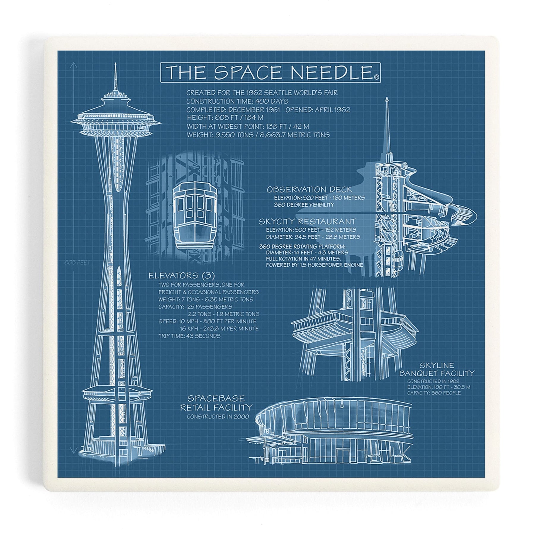 Seattle, Washington, Space Needle Technical Drawing (Blueprint), Coasters