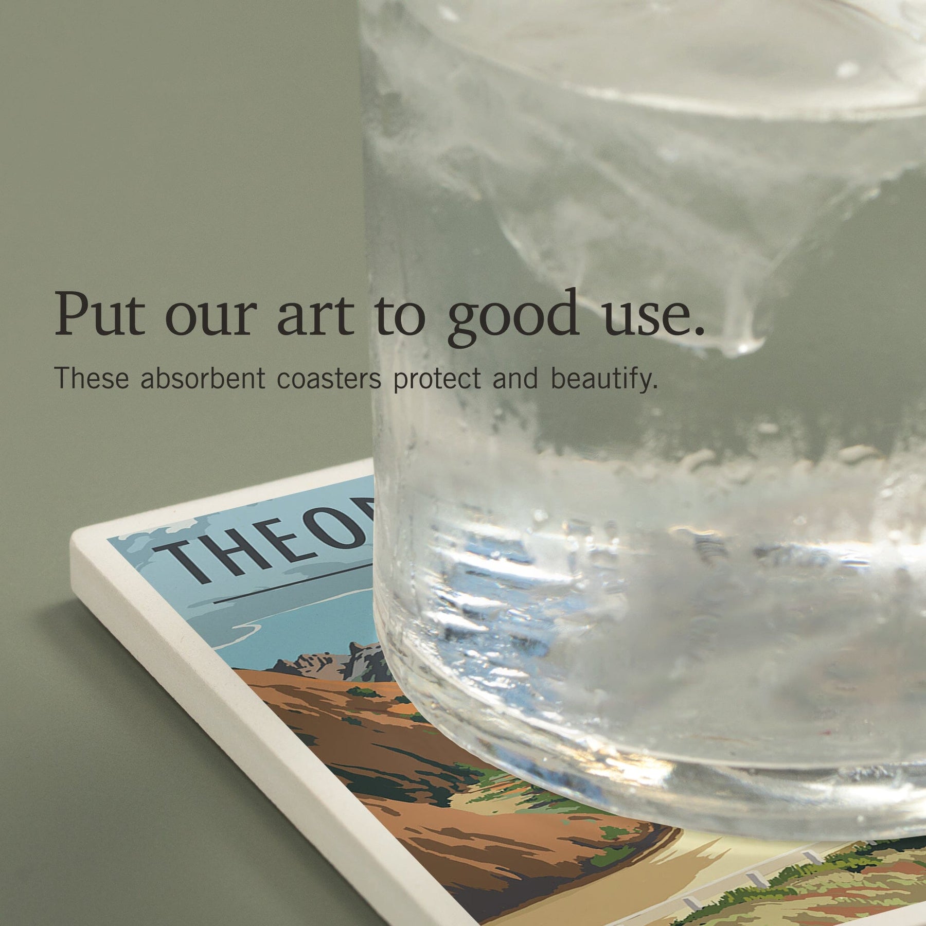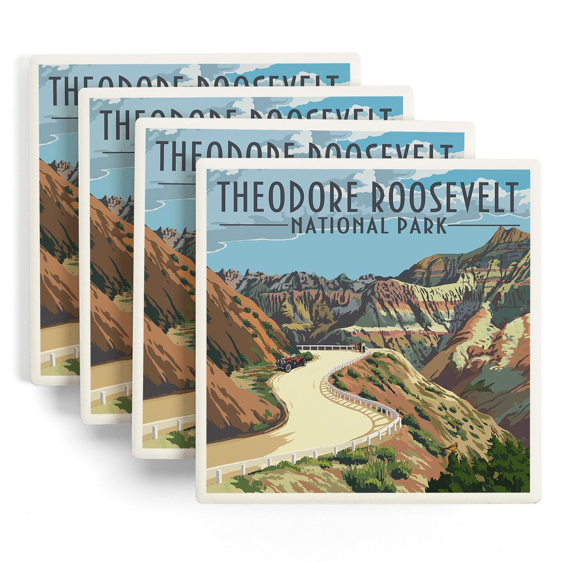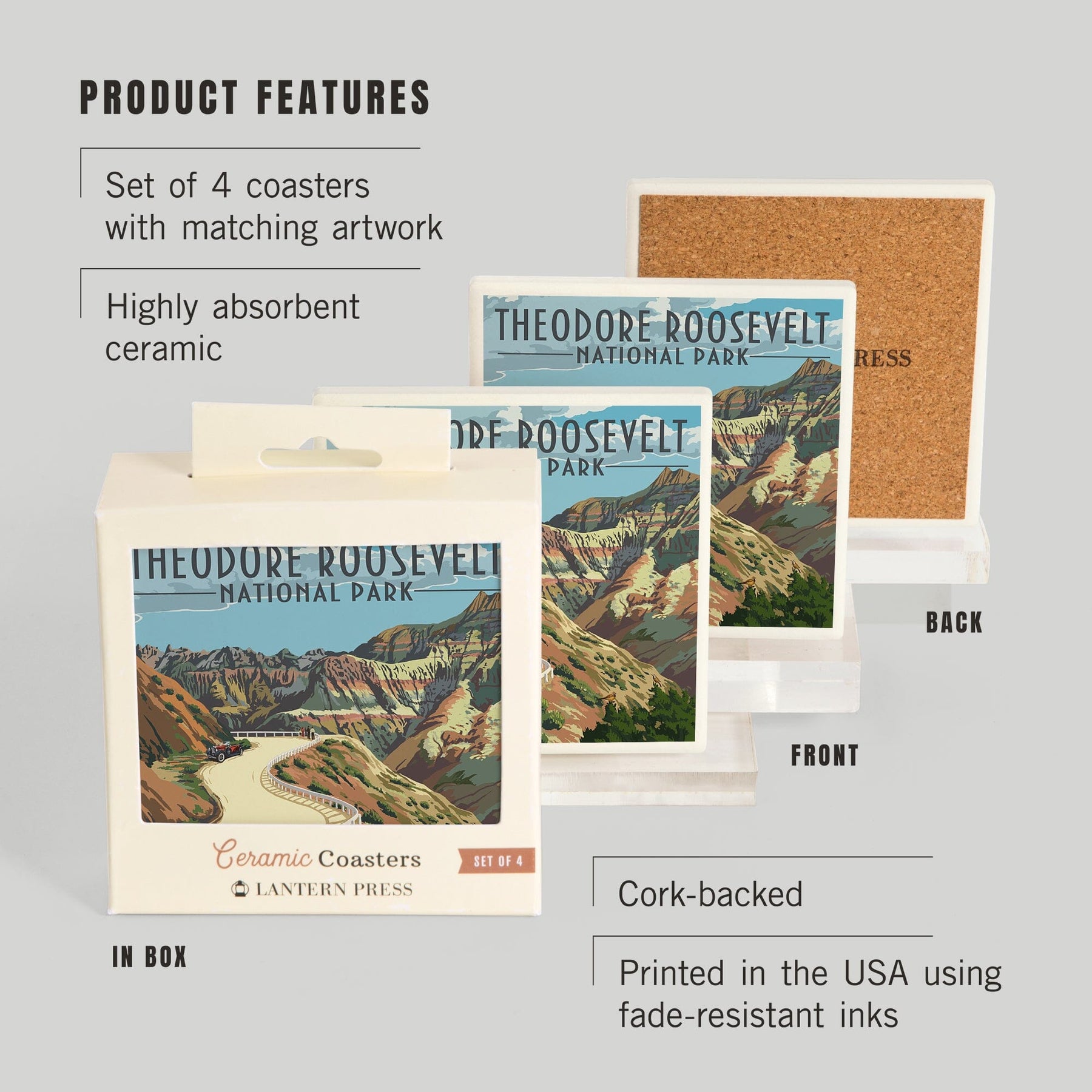 Theodore Roosevelt National Park, North Dakota, Road Scene, Coasters Coasters Lantern Press