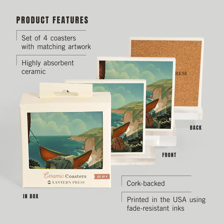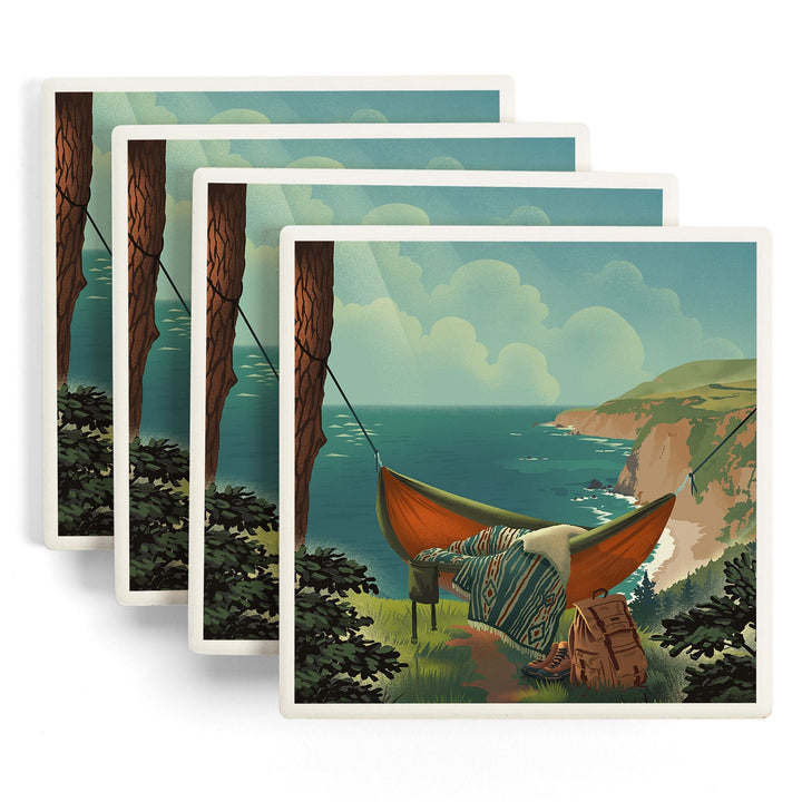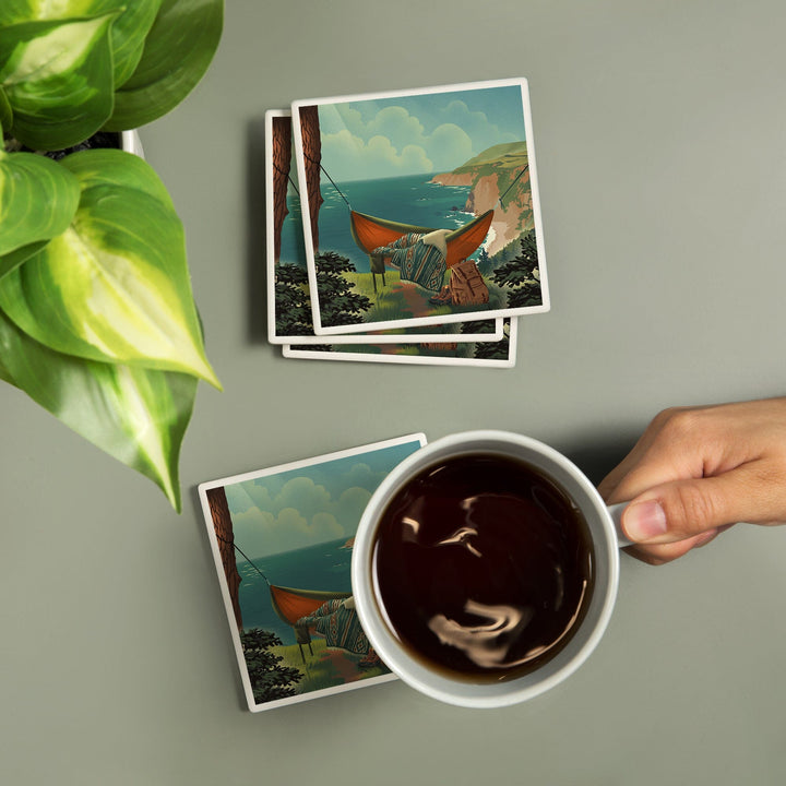 Today's Office, Coastal Series, Hammock on Beach,, Coasters