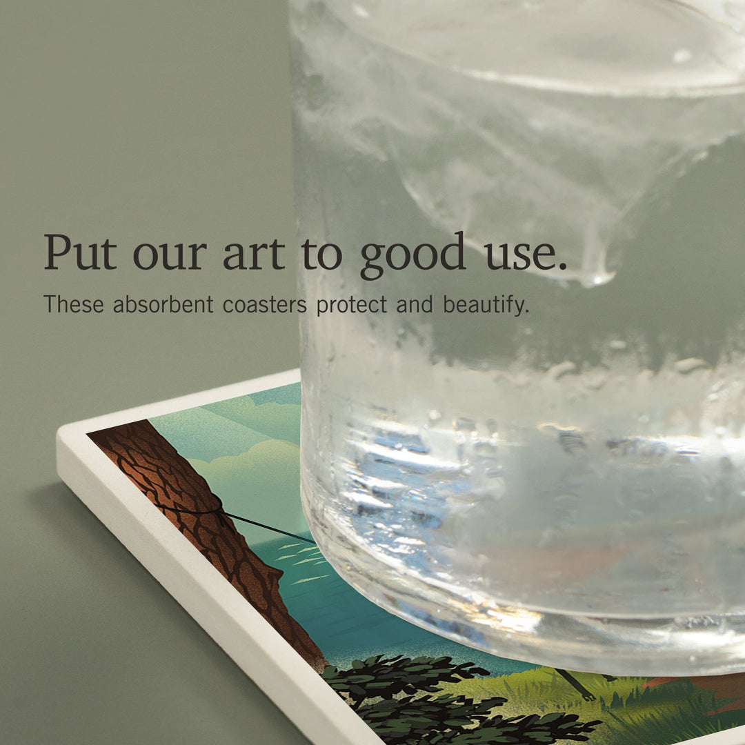 Michigan, Canoe and Lake Scene, Coasters Coasters Lantern Press