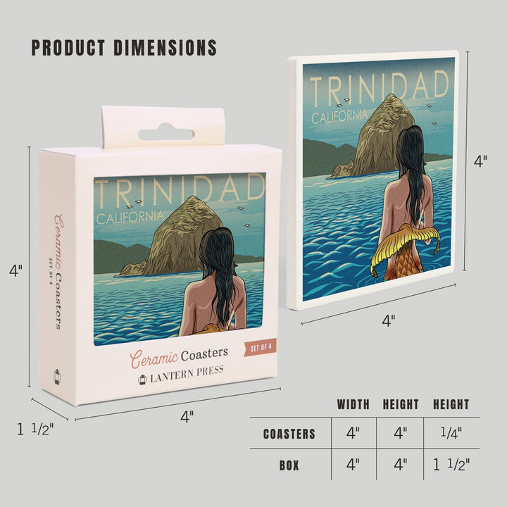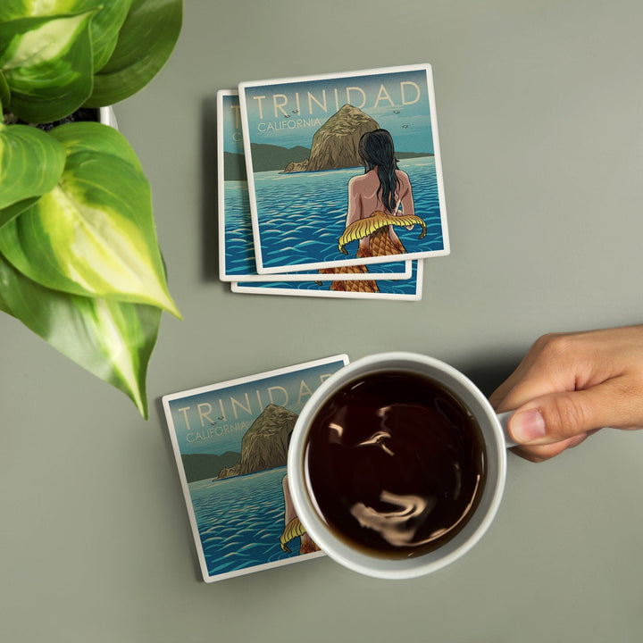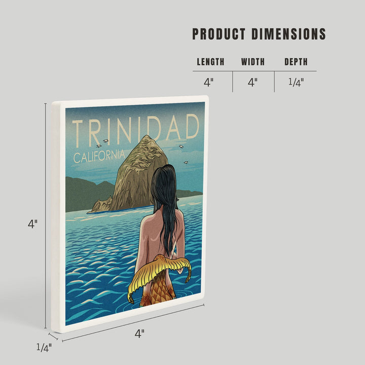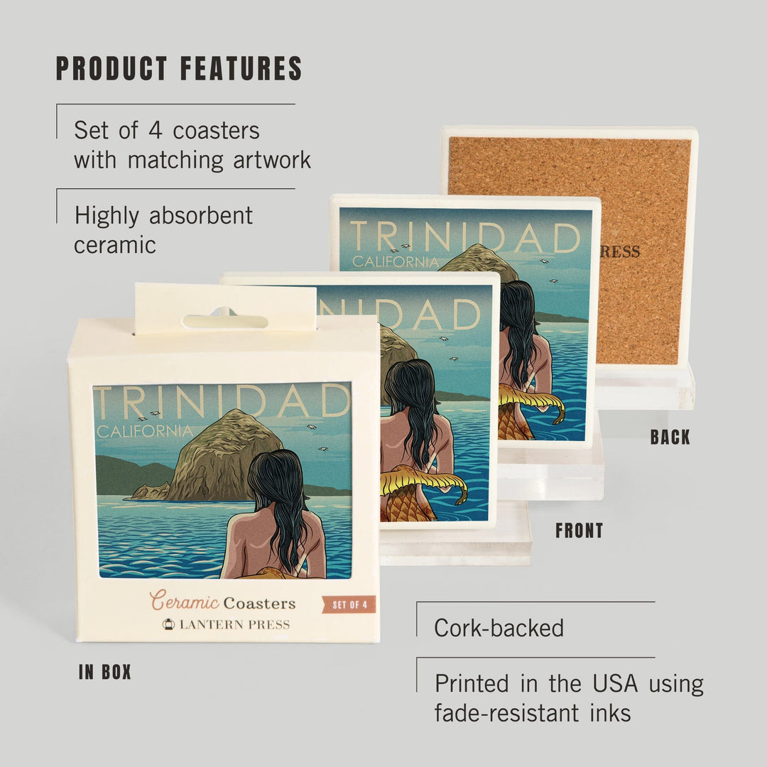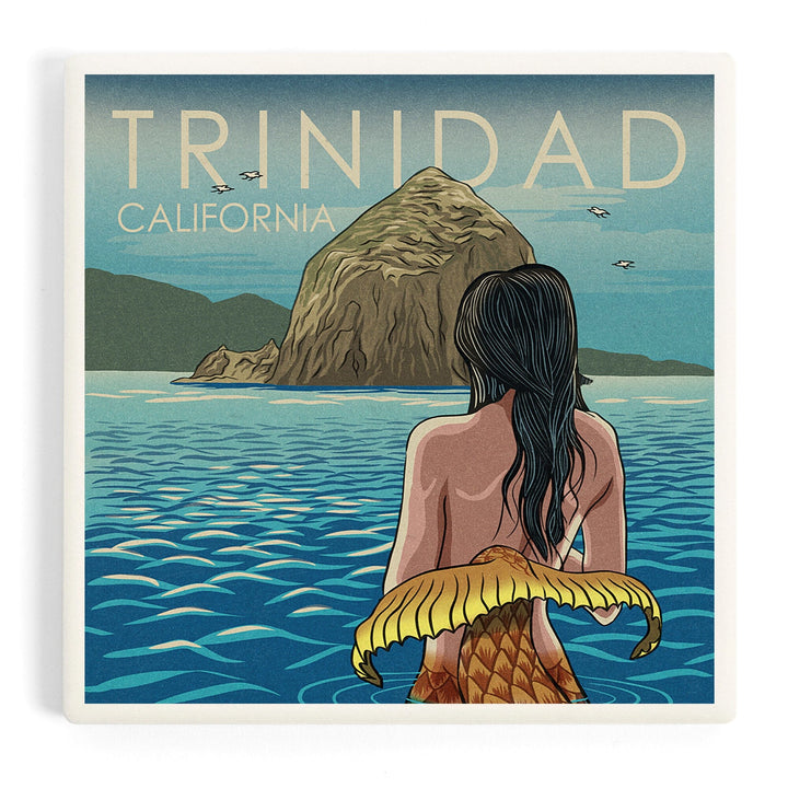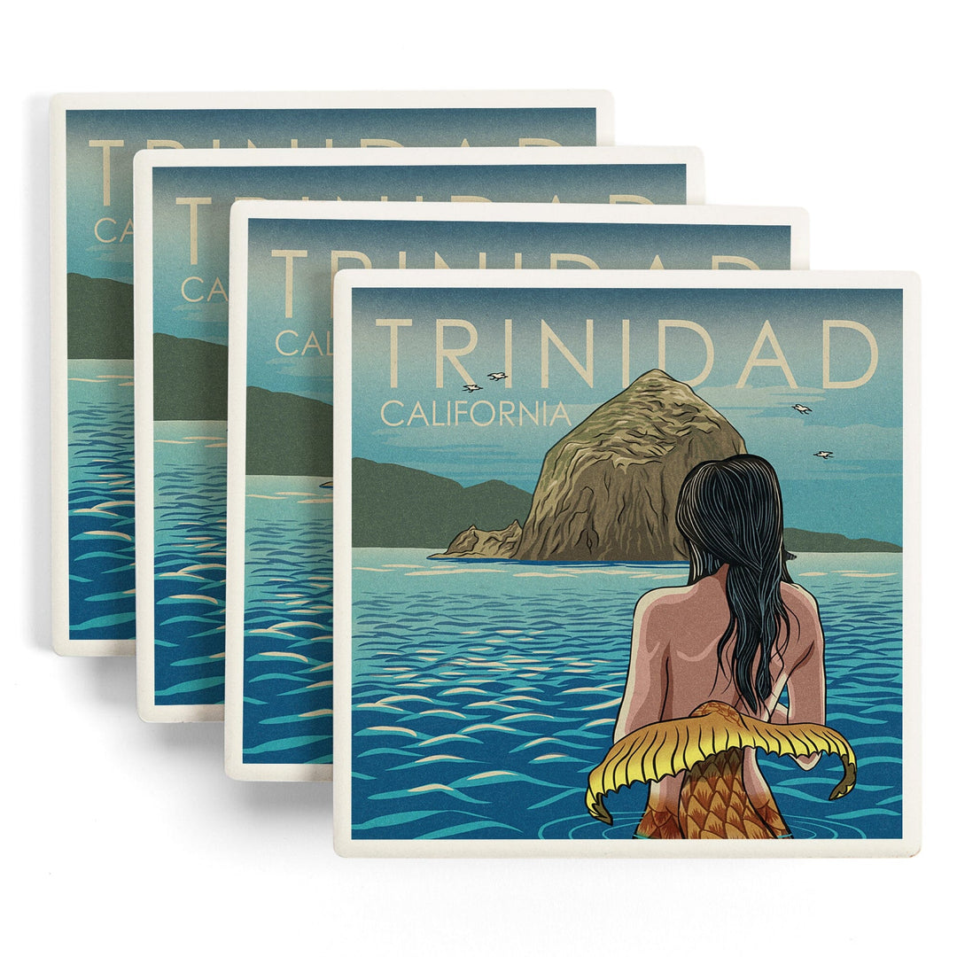 Trinidad, California, Mermaid, Woodblock, Coasters Coasters Lantern Press