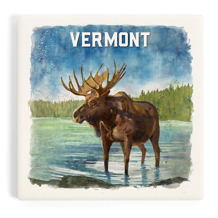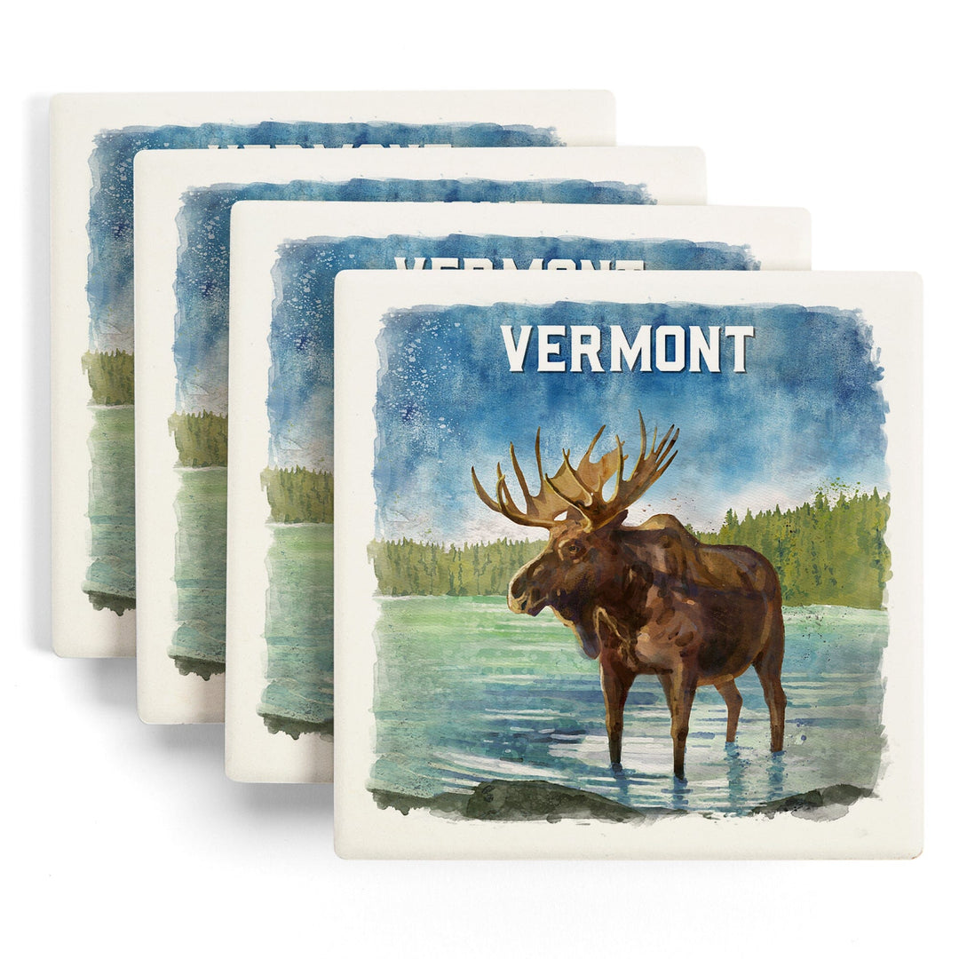 Vermont, Watercolor Study, Moose, Coasters Coasters Lantern Press